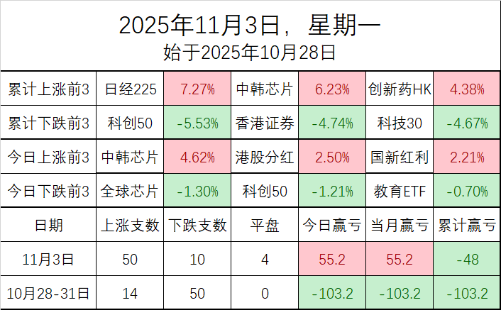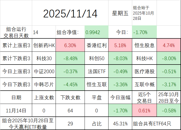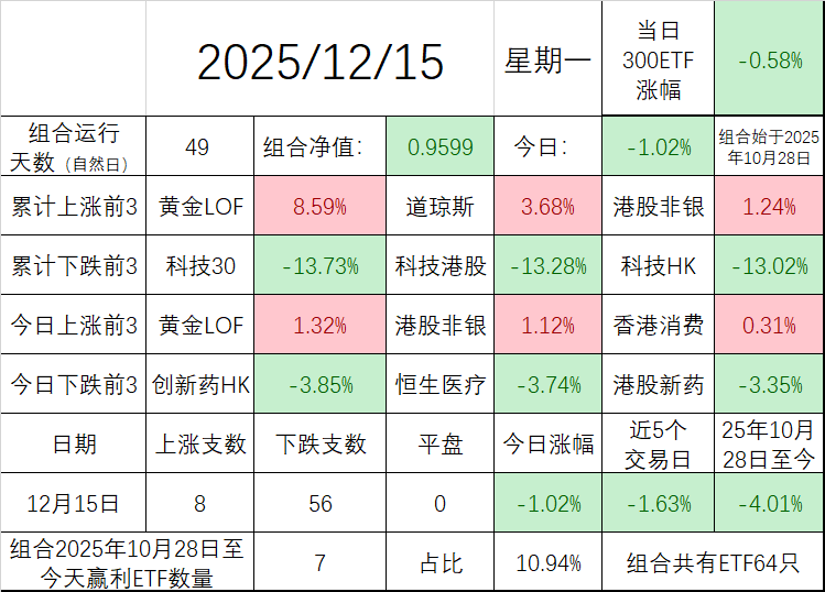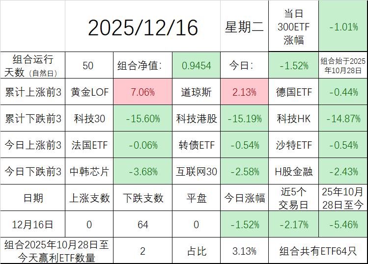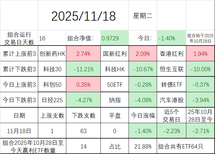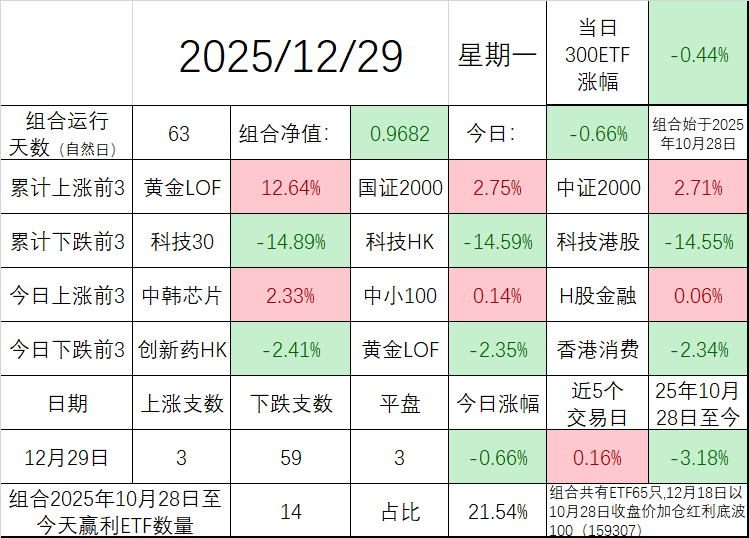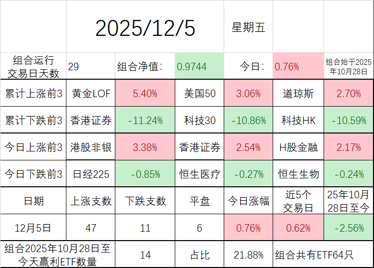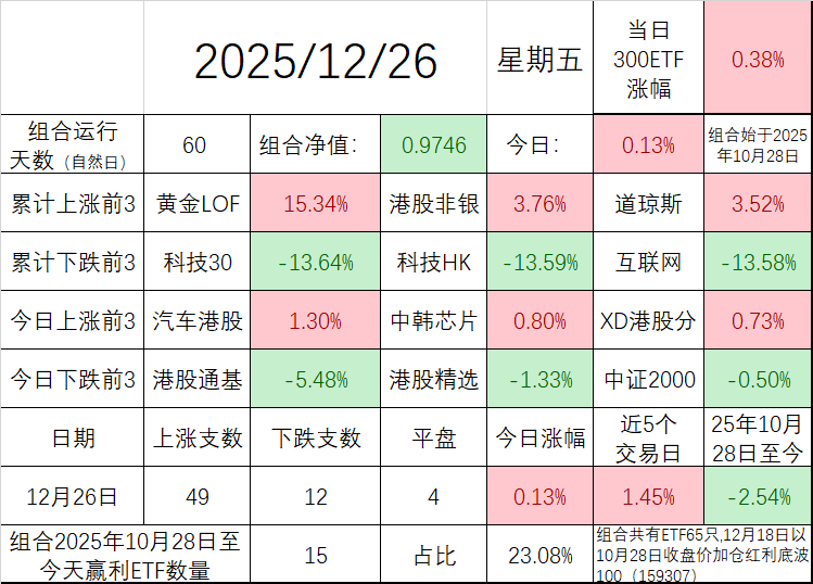 2025年10月28日,最小持仓量(100)建仓64支主要指数基金,观察每日上涨家数,下跌家数,每日赢亏本,月度,年度赢亏