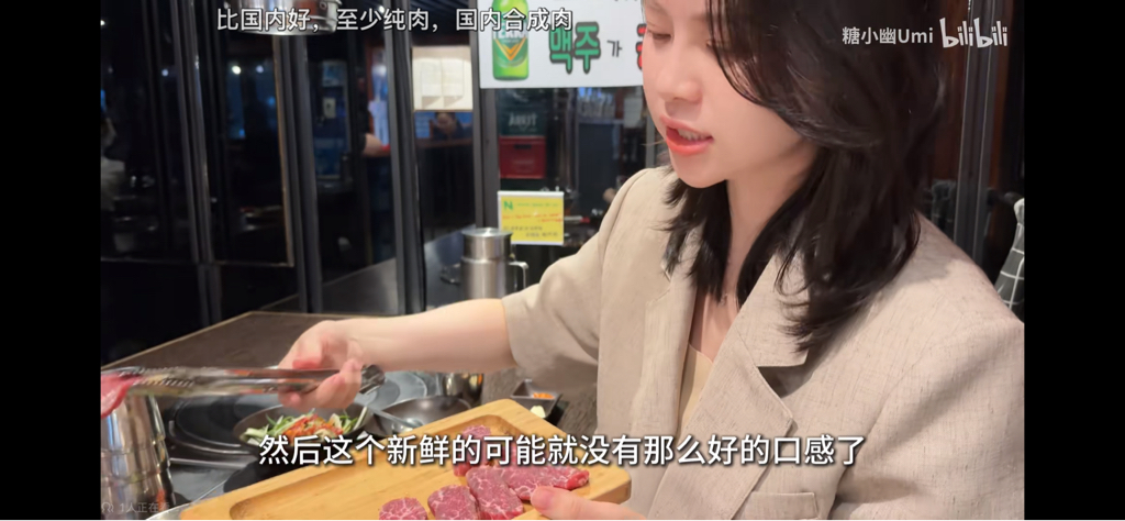 【揭秘韩国肉价和真实工资水平!【糖小幽vlog】-哔哩哔哩】 https://b23.tv/egsoBW5我没去过但是我看过去的人介绍 大概从2分钟时候开始甚至弹幕说的和你一模一样 我还专门截下来给你看了 是你发的吗全网说国内用合成肉的弹幕都是我发的
