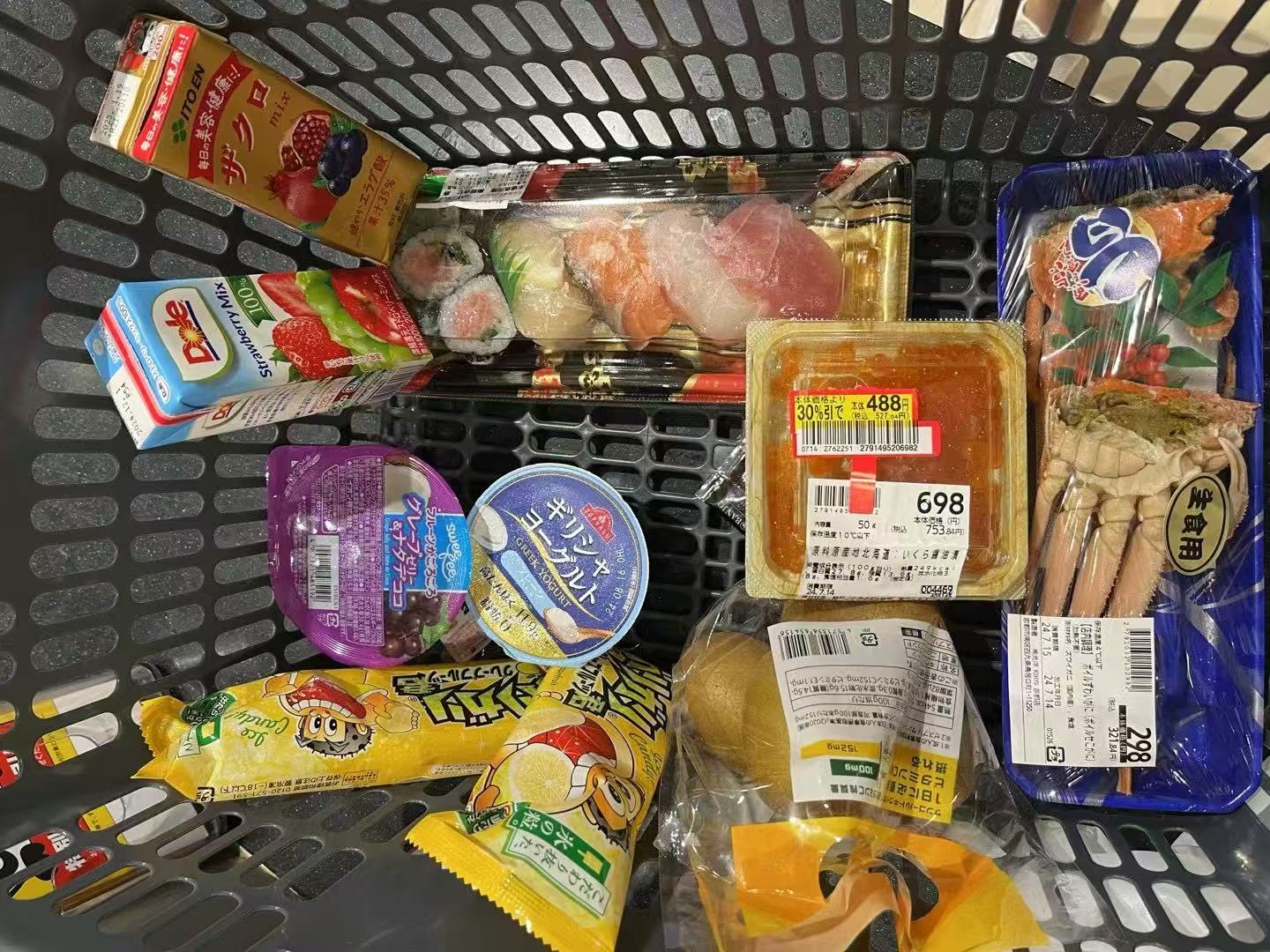 这个寿司,鱼仔,螃蟹,猕猴桃,饮料乱七八糟一堆130人民币。