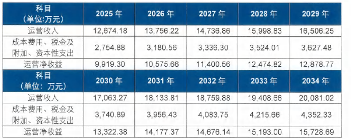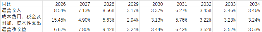 评估数据,2035年开始,每项都是增加2.75%,而2029年只剩一个资产,营收估计为7591,成本为1649。按公司给的6.25%折现率,大概就是19.8亿元。
