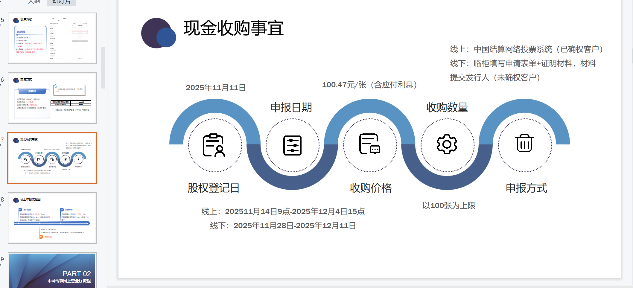 为进一步保障债券持有人的利益,对于未能在权益登记日(2025 年 11 月 11 日)前完成确权工作的债券持有人或因特殊原因未能通过中国结算网络投票系统申报意愿的债券持有人,若希望参与本次收购,可以按照本公告内容通过线下进行申报。