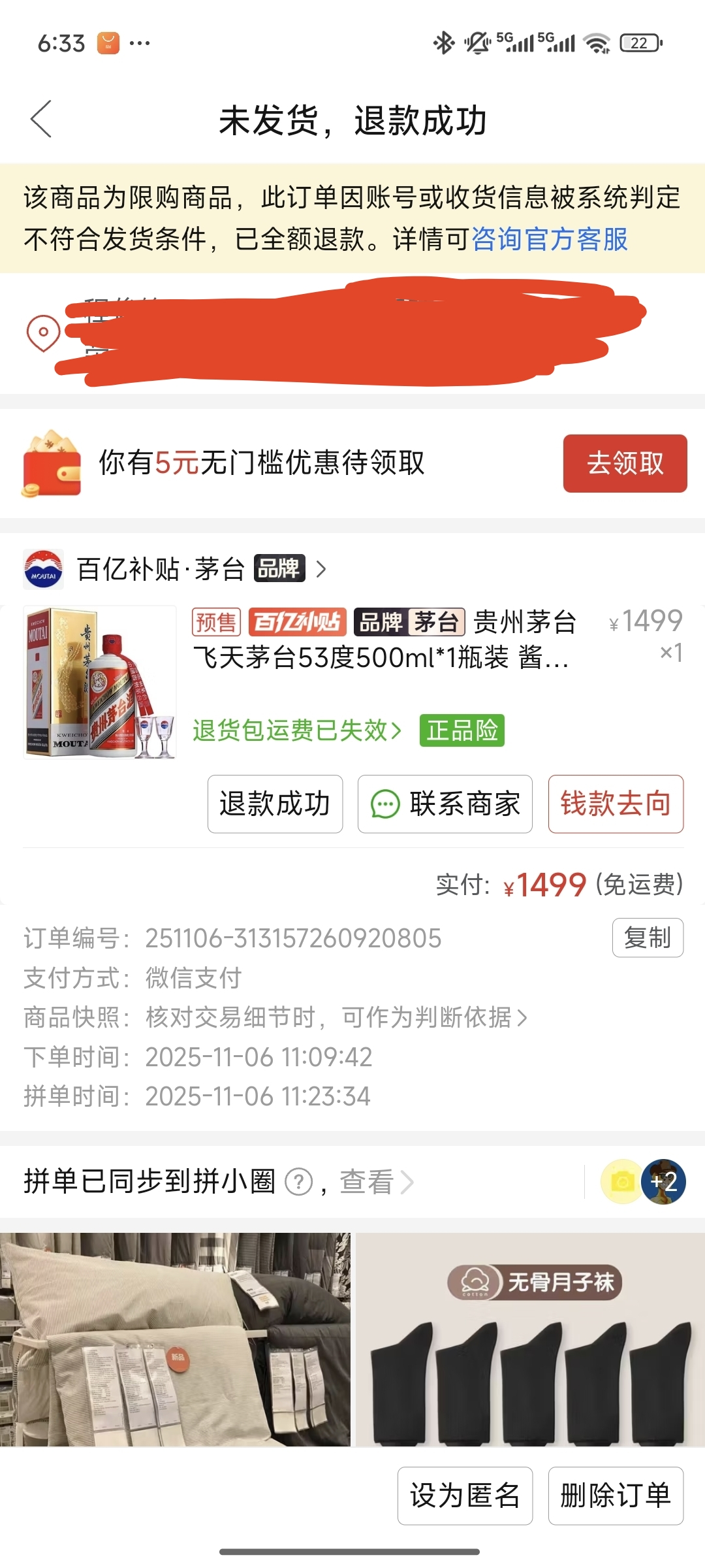 今早刚看到,飞天茅台1499,某多,绑卡支付还能再减10元,1489到手,能入手吗?还是要继续跌?