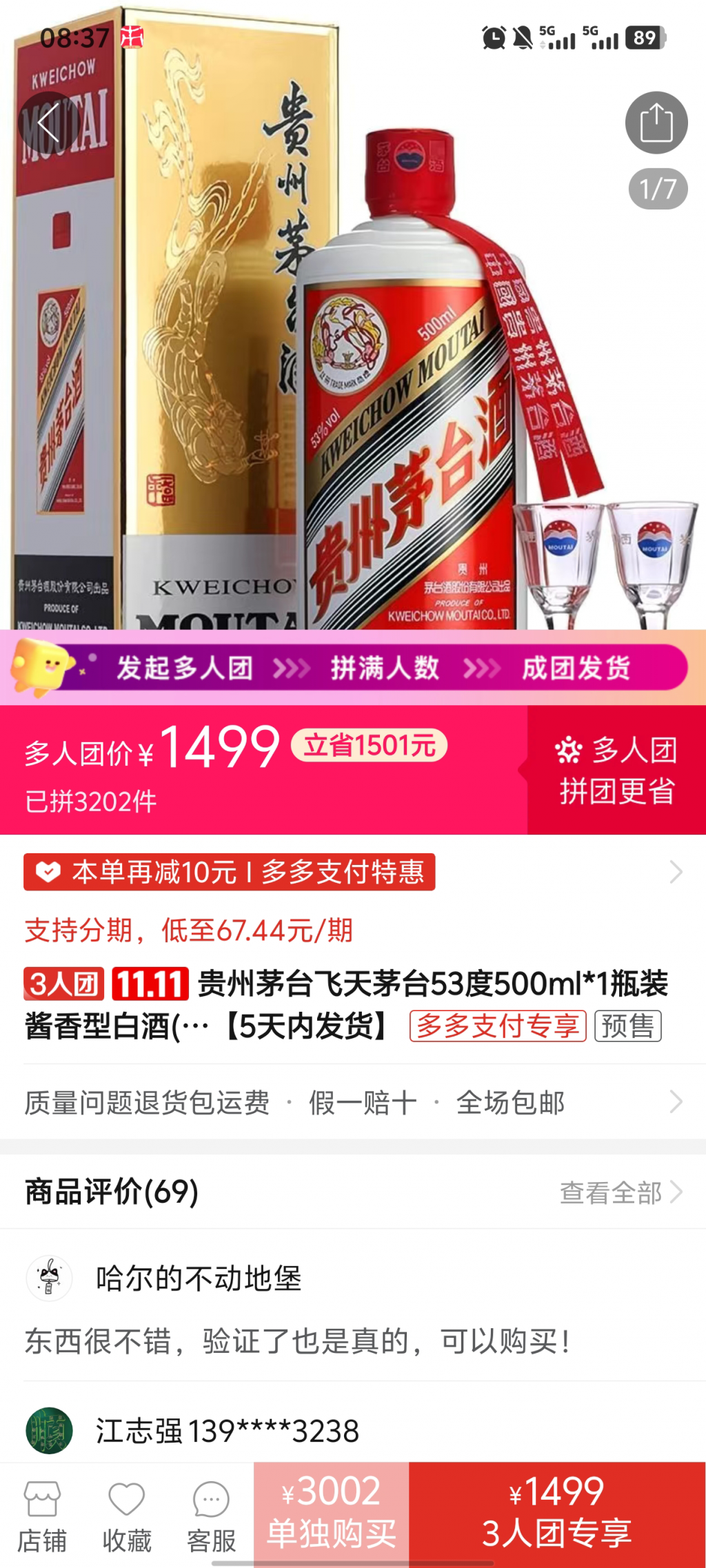 拼夕夕的茅台就是行情风向标,可以做参考价,但不介意买,有卖打孔酒的,一般黄牛收也是看哪个商家的货,似乎里面猫腻不小