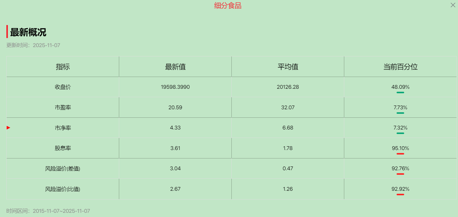 解读:这意味着大消费估值比过去80%多的时间都要便宜。从估值角度看,继续大幅下跌的空间已经非常有限,而长期上涨的赔率(潜在收益/潜在风险)非常高。