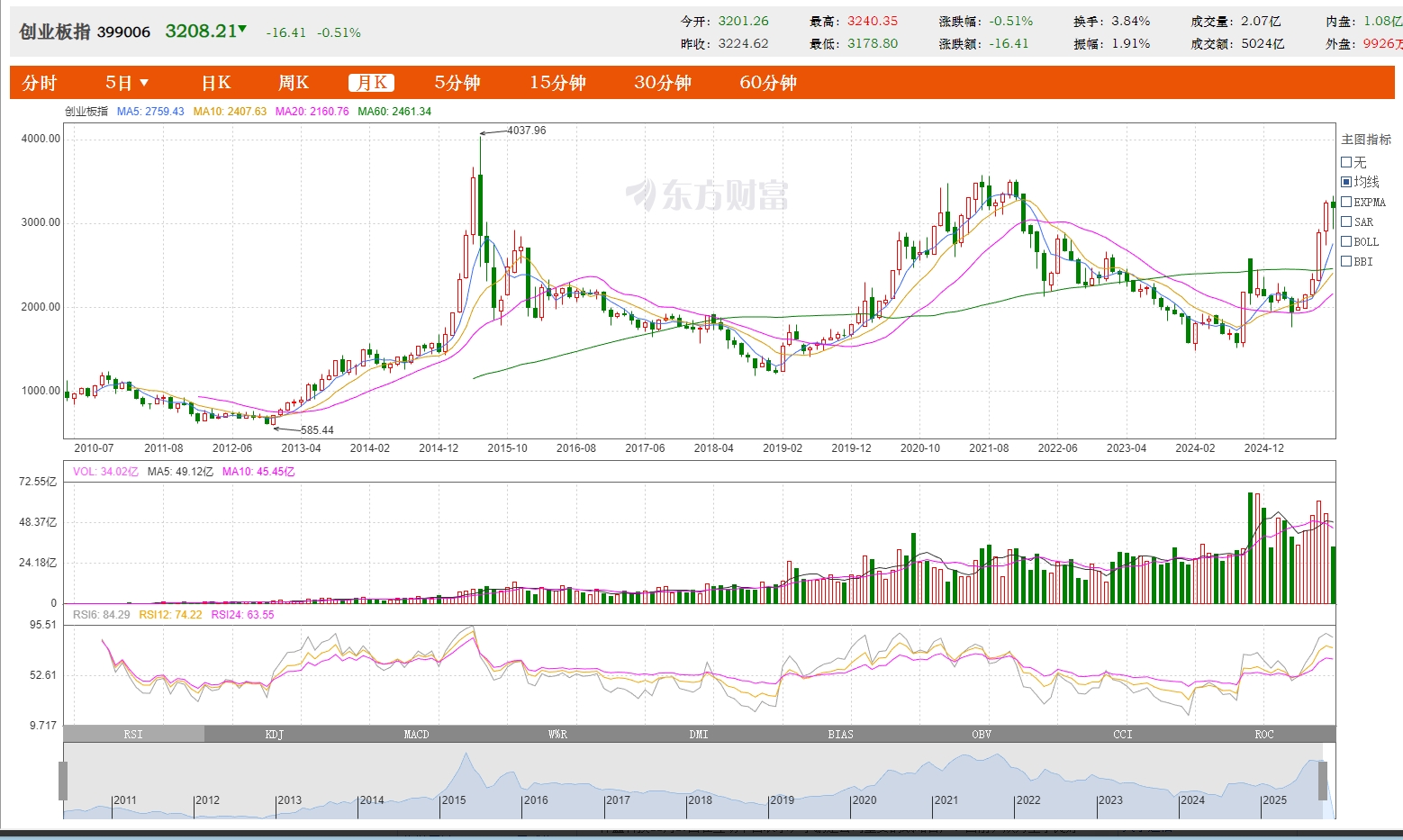 从创业板周期走势比较明显,跌6-7年,升2.5年,而从2024.9.24至今才1.2年,