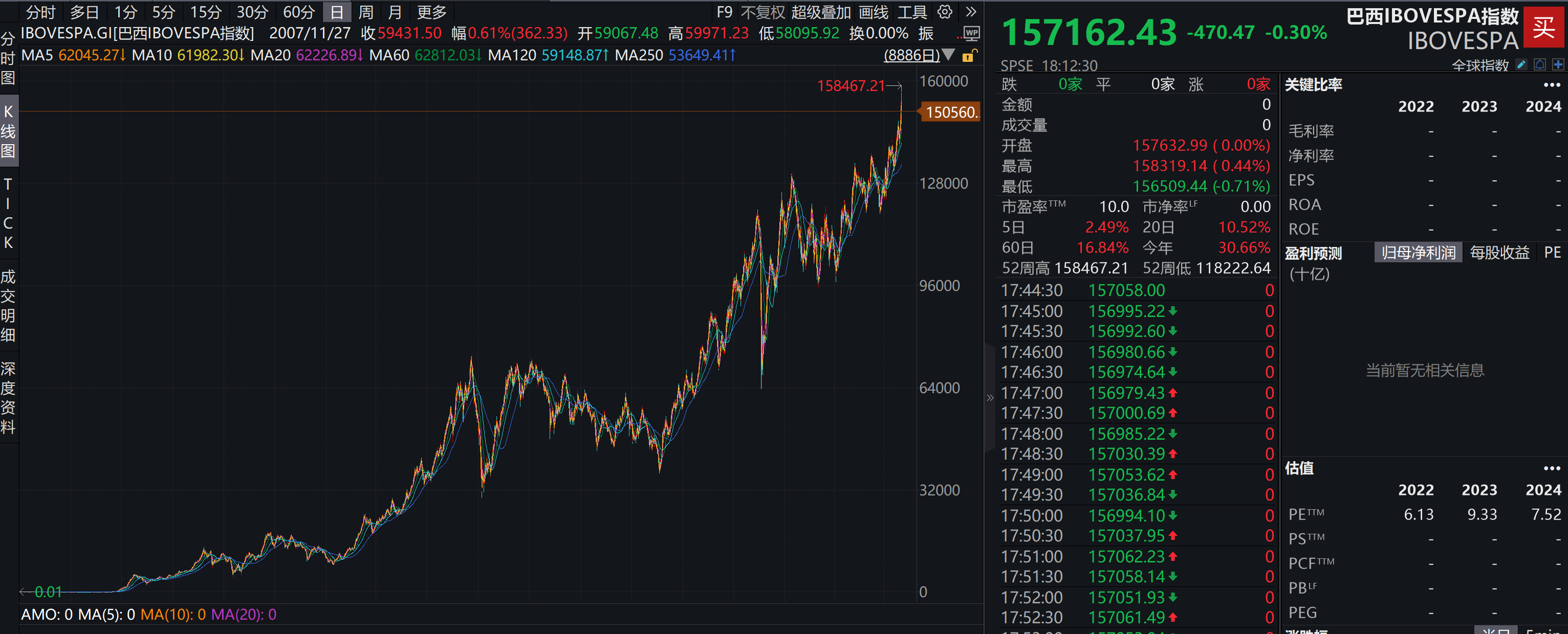 可以通过多种渠道查看巴西*伊博维斯帕指数(Ibovespa)期货*的行情数据。Ibovespa 是巴西圣保罗证券交易所(B3)的主要股指