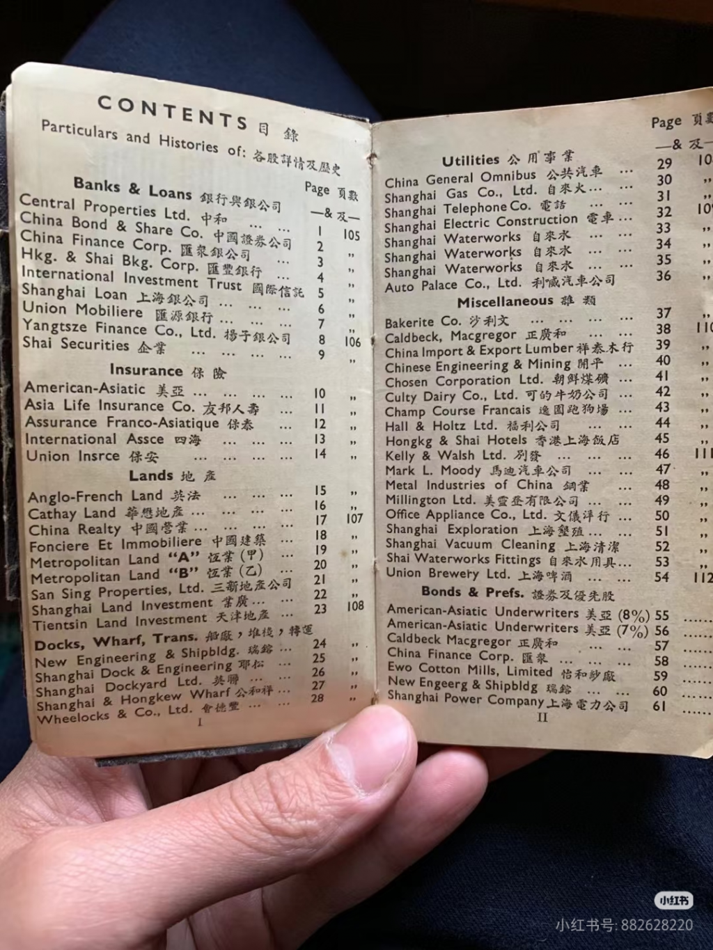 民国时上海证券交易所的股票列表,其中有“汇丰银行”、“美亚保险”、“友邦保险”。