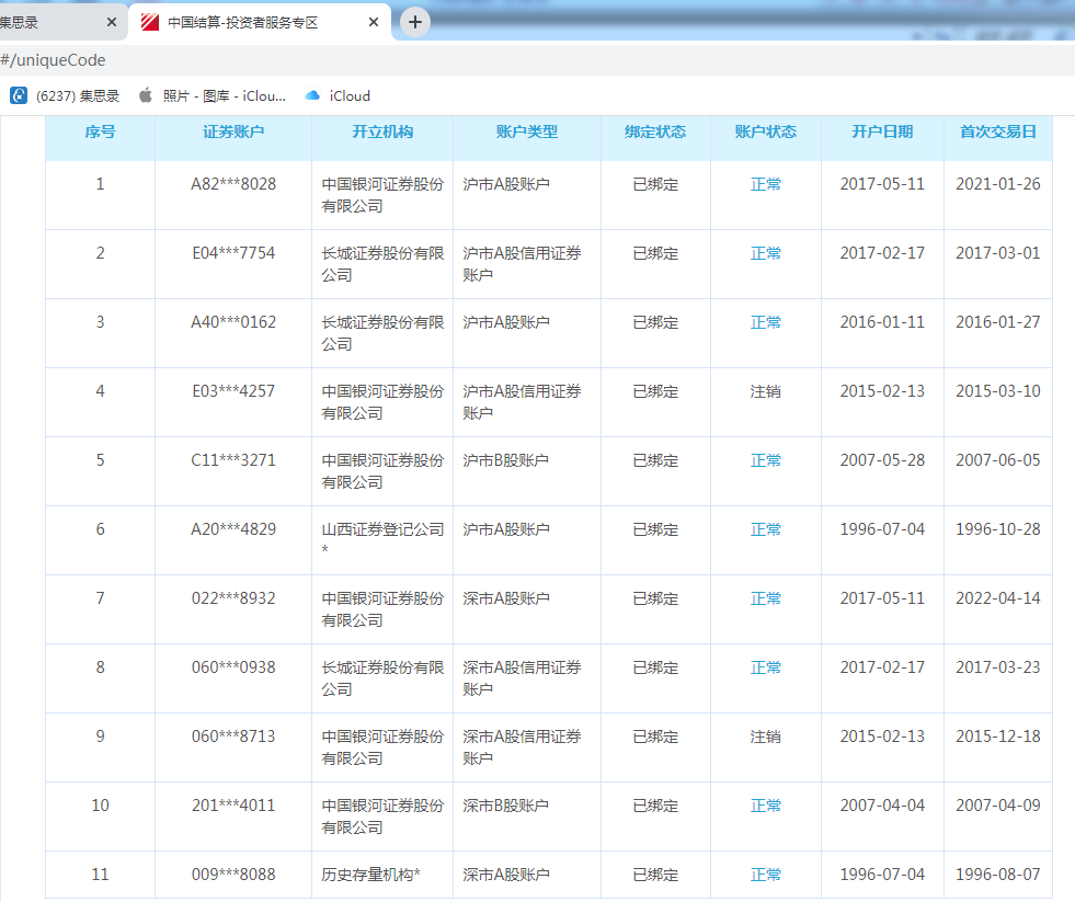 闲来无事,到中国结算上转了一圈,发现自己有那么多帐户