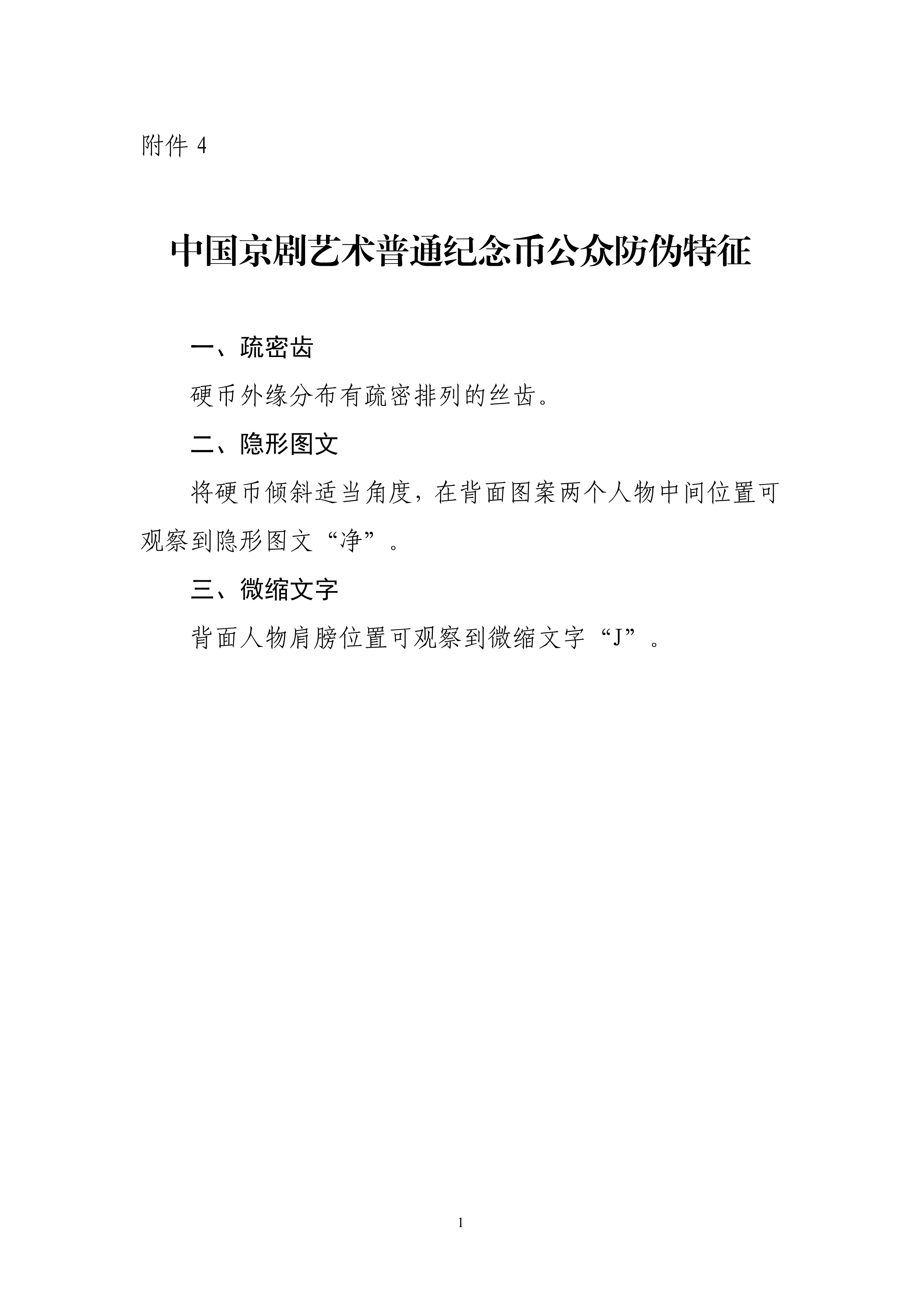 四、中国京剧艺术普通纪念币公众防伪特征见附件4。