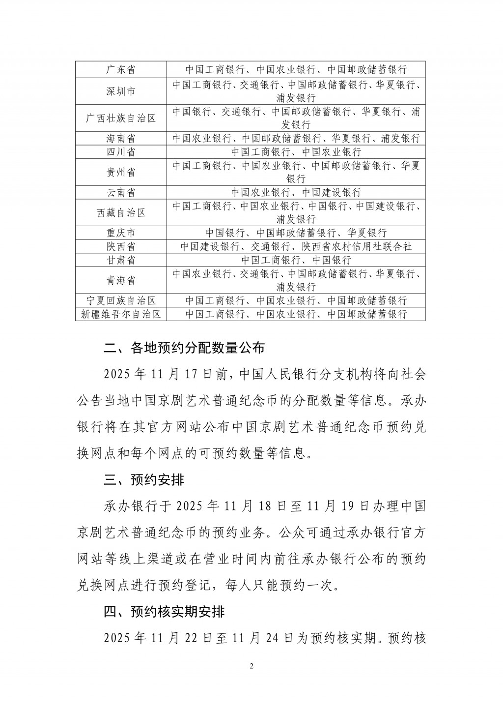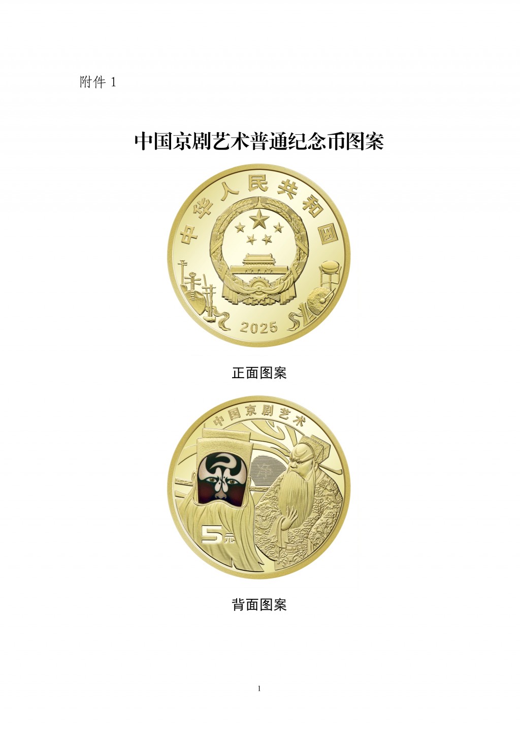中国人民银行定于2025年11月25日发行中国京剧艺术普通纪念币一枚。