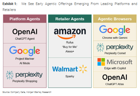 摩根士丹利研究团队认为,从2025年到2027年,科技巨头们预计将在数据中心投入累计约1.7万亿美元资本开支。这些投资正在催生新一代生成式AI产品,而AI购物代理被视为下一个重大突破点。这个“永远在线”的“网购Agent”能够: