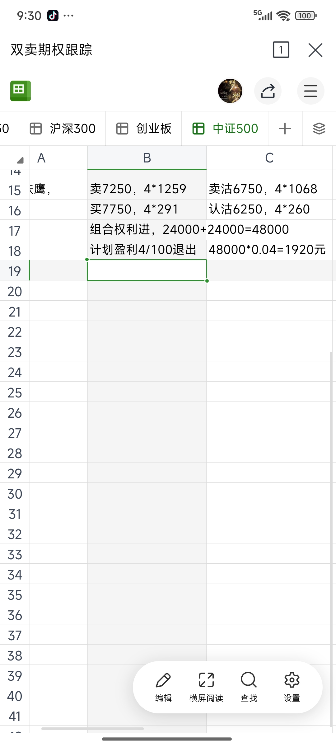 所以没有赚到什么钱,微利,白白损失了一次牛市,这几天纯卖沽今天还被套了。这不准备记录下,此次操作何时能够解套。一个牛熊轮回能够盈利多少,主要操作为卖沽,接货。有货有款就双卖,随性操作。要求不高能超过银行存款就行!