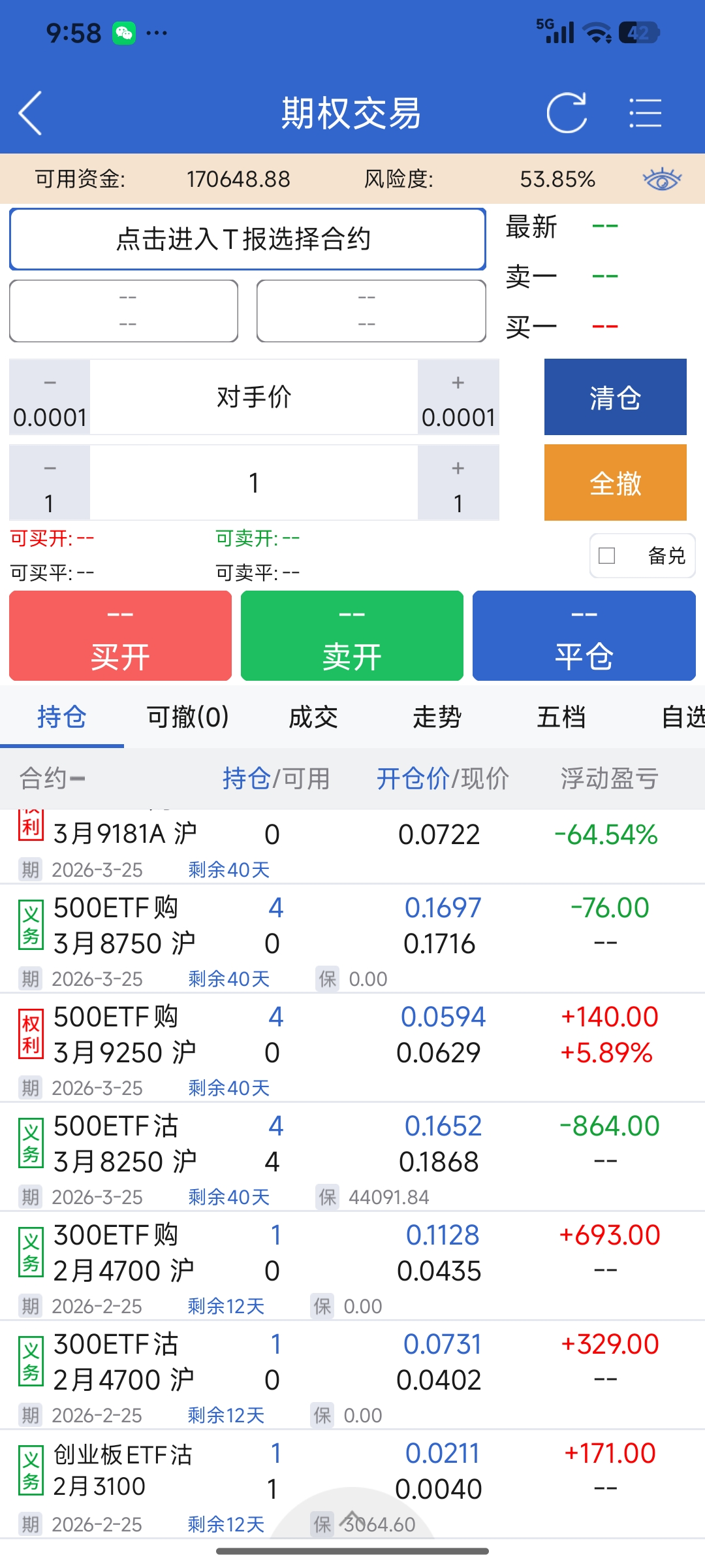 其余的分散在天天基金和期权账户。场外持有一些货币基金,或者买一些债券基金。