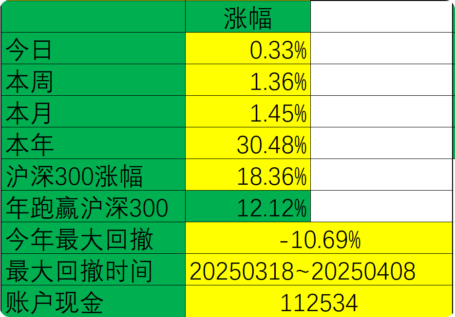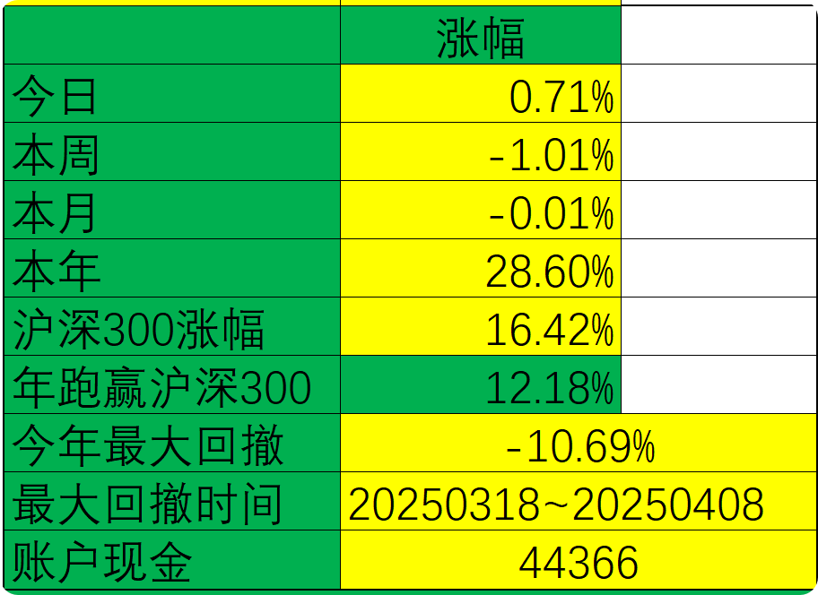 但这周我跑输大盘挺多的,手上一些资源股,这周表现不太好。这周是又亏钱又亏超额,难受。