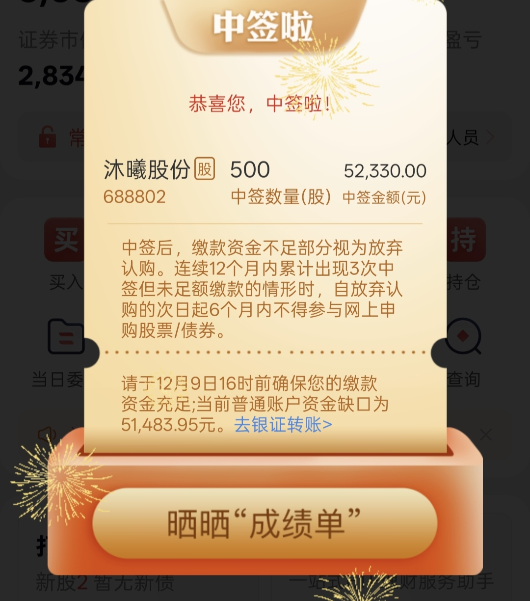 这尼玛二十多万赢麻了啊。我新股最多的还是19还是20年左右中的柏楚电子,那个新股挣了9万多。今年就中了一个华之杰,挣了两万。总之这些年所有新股加起来也没挣到20多万!!!