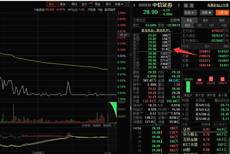 叠加中信前阵子巨额压单。。不能涨。压单压得像跌停一样(实际跌0.99)