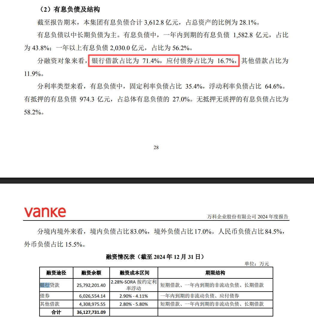 查了查万科年报,有息负债里70%是银行借款,无抵押占比60%左右