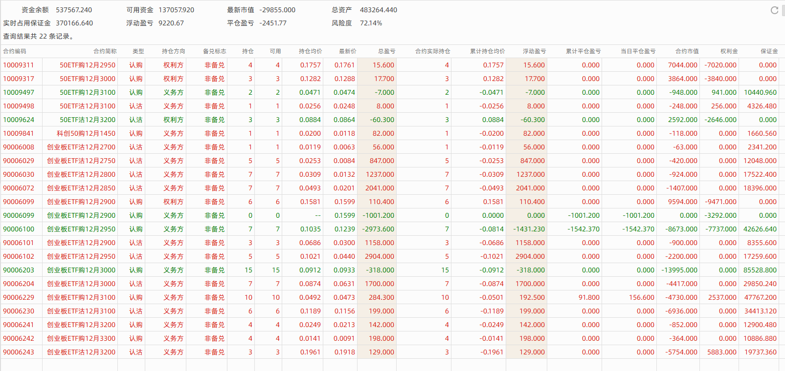 期权操作方面,今日已主动增加认购与认沽期权的权利仓双开仓位。核心逻辑在于,当前市场波动率处于极低水平,此时做双卖策略风险较高;而在成交量低迷、波动率低位的环境下,期权买方性价比更高(需控制仓位不过重)。反观成交量放大、波动率提升时,卖方策略则更具优势。目前个人组合中卖方仓位与买方仓位并存,形成平衡配置,后续若成交量缩至极致,计划进一步扩大买方仓位。