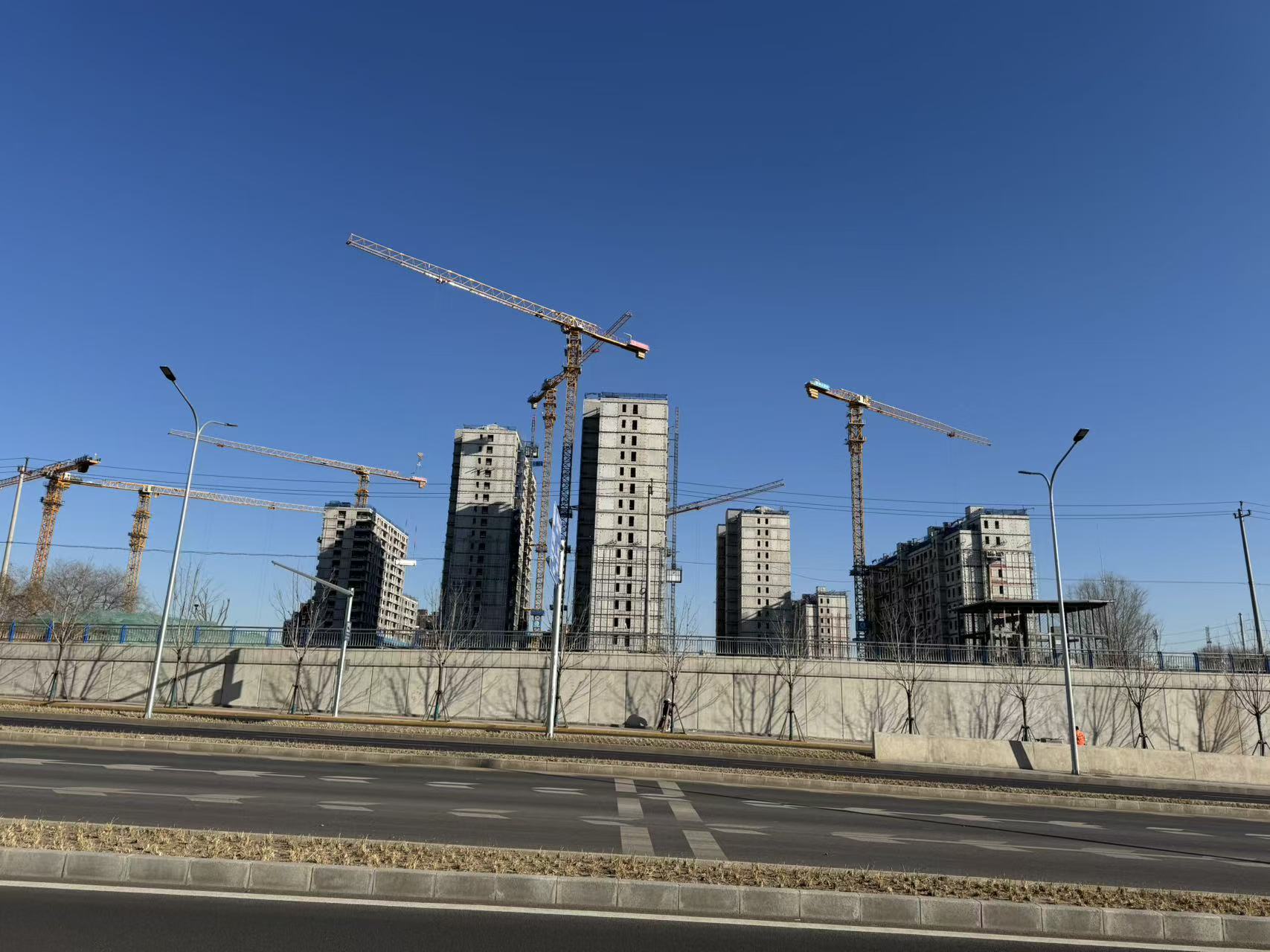 马路两边肩并肩有两个楼盘