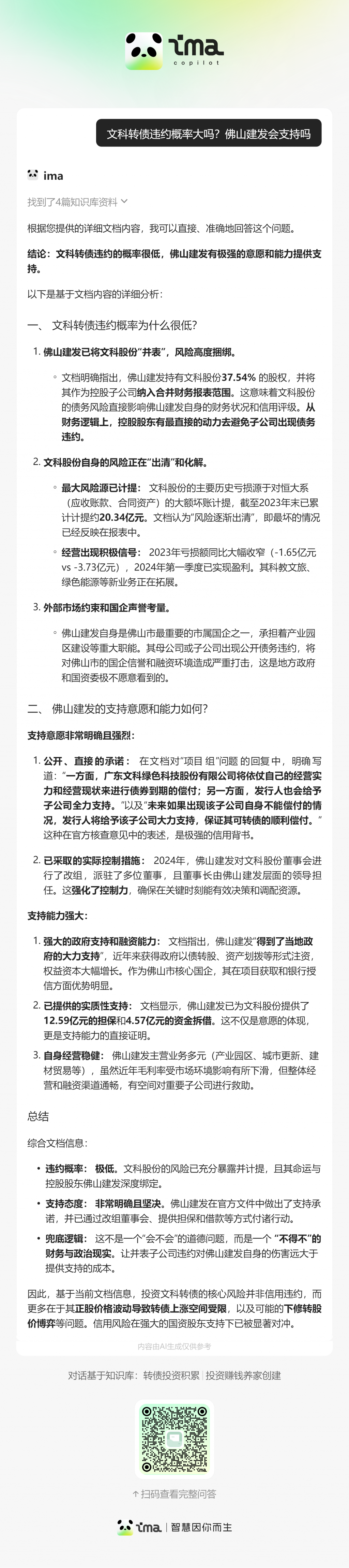 文科转债:佛山建设发展集团对文科转债有兜底的直接表态与兜底的实力,并表,持股接近37%,