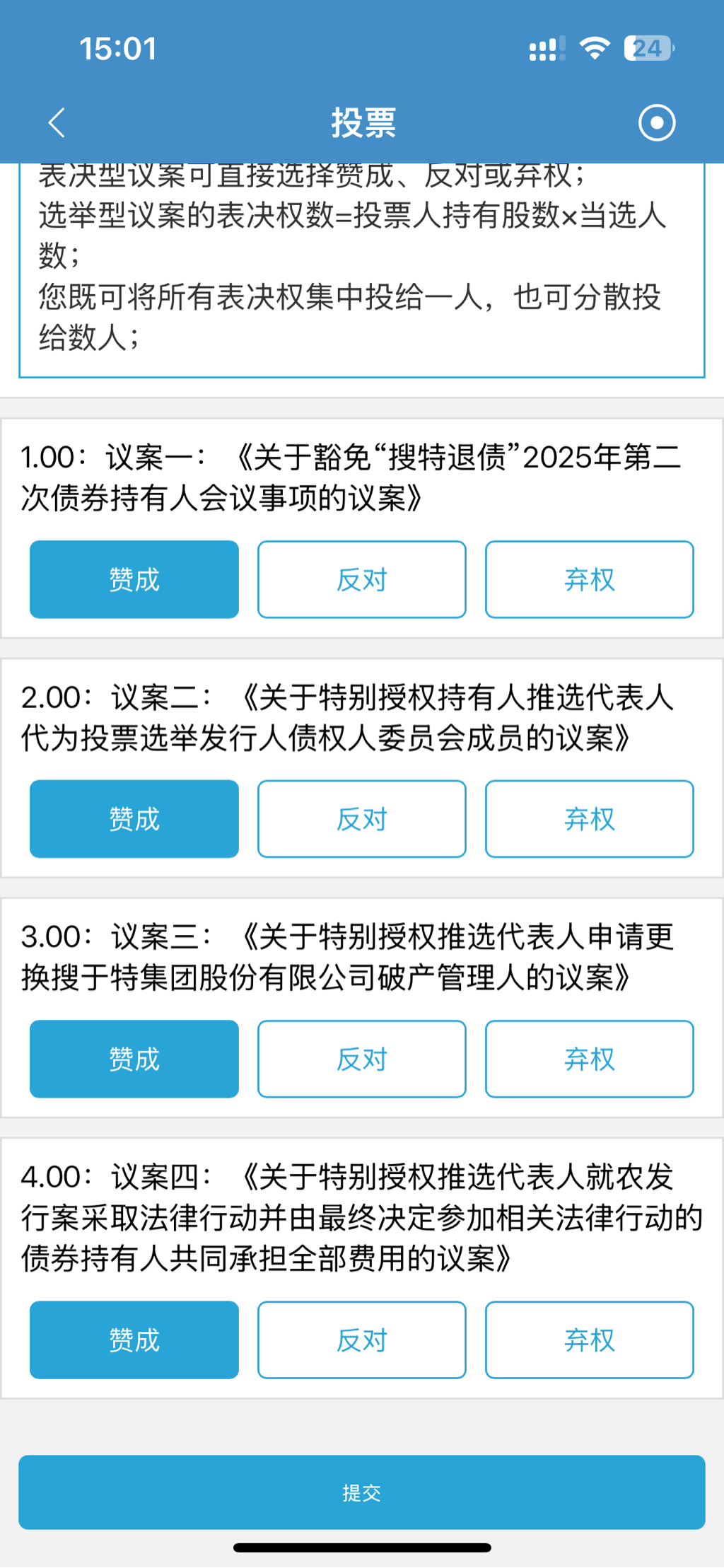 还是那句话 做这个事情 我们希望代表的人越多越好,请注意 不要以为这个议案100%会通过你就可以不投票或者少投票、有几个账户就投几个 ! 我们需要的授权人数 是第一重要的! 我们能代表10000人的授权去找最高法 最高检 和代表300个人 意义完全不同!