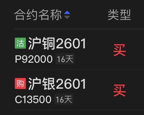 上周白银多单离场后,昨天白天收盘前做了个多白银空铜的期权买方组合,运气比较好两者都买在低点附近,目前组合收益已经超过40%,继续吃瓜看戏。