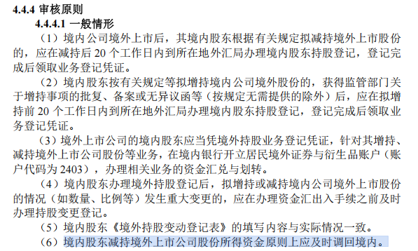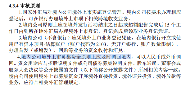境内企业去境外上市(包括港股),不论是企业的募集资金,还是股东的减持所得,“原则上”都需要及时调回境内。