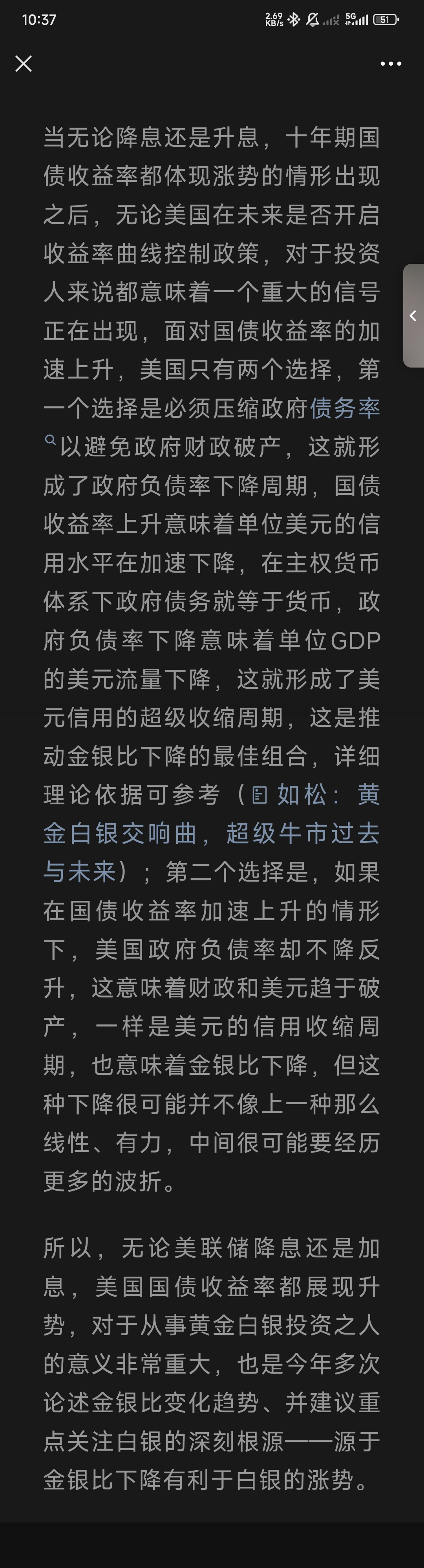 38万亿国债根本不是问题。如果连还利息都有问题,美帝早就把利息降为极低,发新债还旧债了。利息又不是浮动的, 高息期间发出去的债 到期前要一直交那么多利息, 美元债大部分都是中长期债, 你以为一声令下就能马上少还钱了吗?