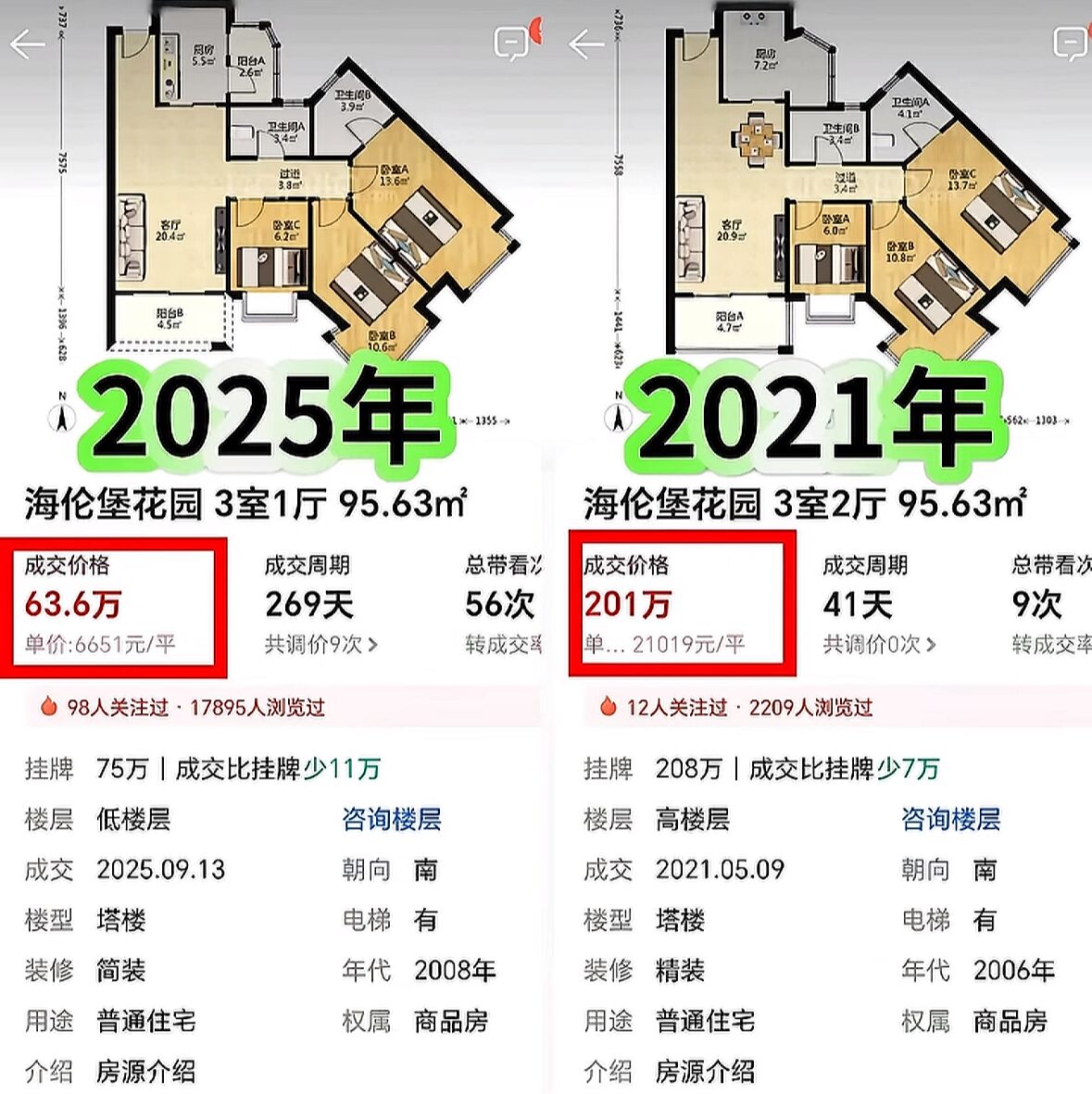 现在房产投资投机逻辑正变得混乱,以前成都越靠市中心,房产价格越高,现在完全乱了,同一区域相似品质的新房比房龄多几年的次新房高50%甚至100%,现在即使想投资房产也不知道如何下嘴,这也是目前房产投资或投机疲软的主因之一。很简单啊,现在买房子考虑的是将来有没有人来接盘,老破小这类体验不好的房子,将来年轻人看都不看,所以就跌了