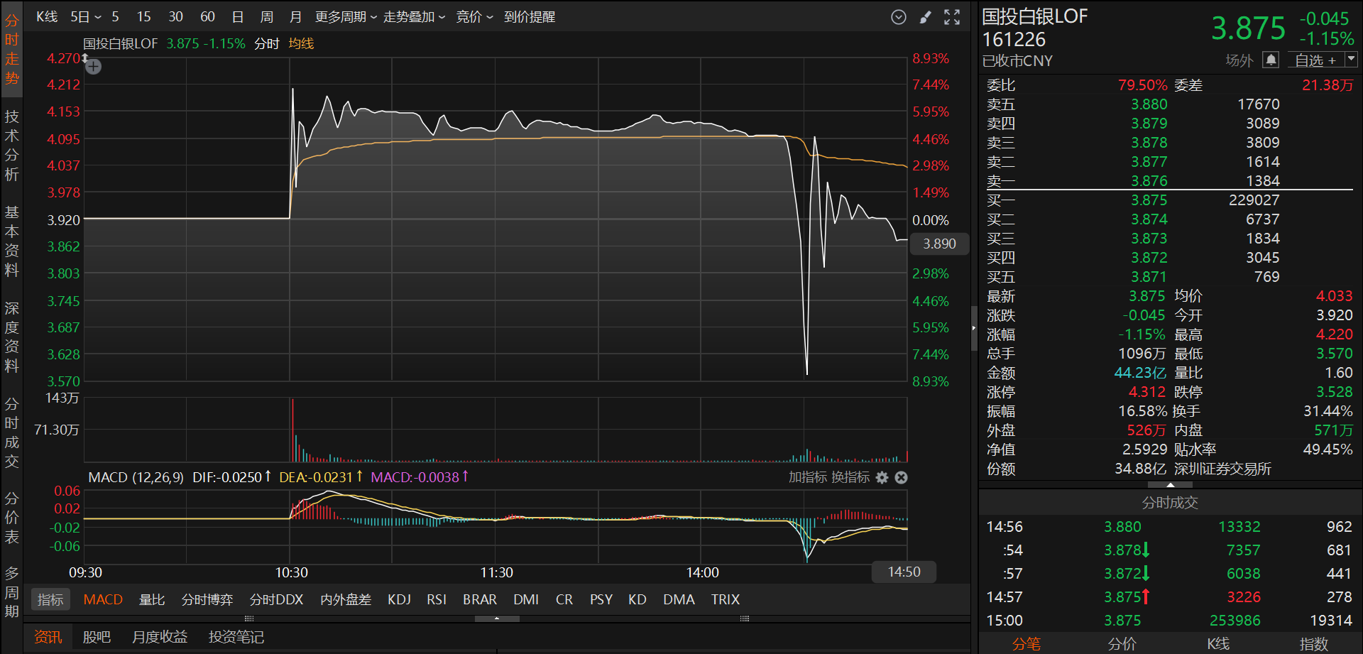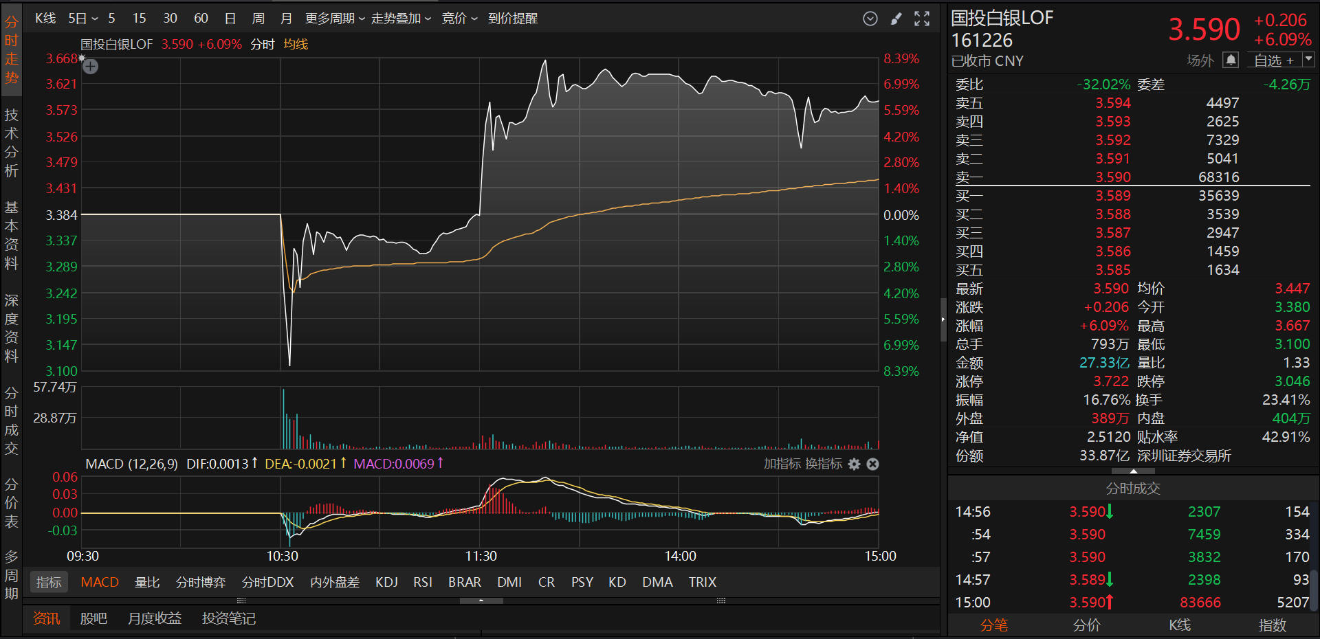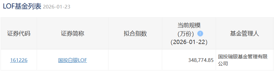 2026年1月22日,国投白银LOF场内份额348,774.85万份,新增3,828万份,1个身份证申购100元,相当于100.74万人申购。