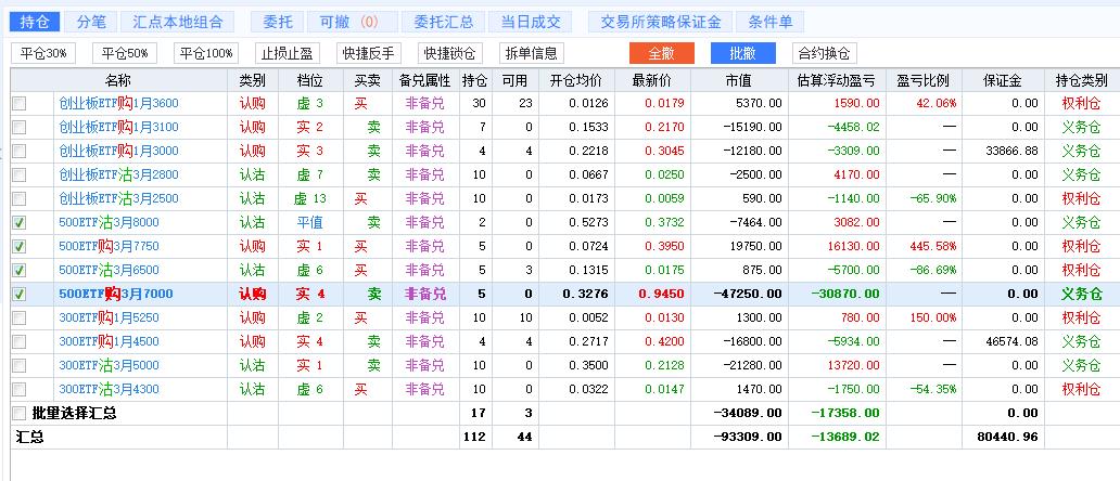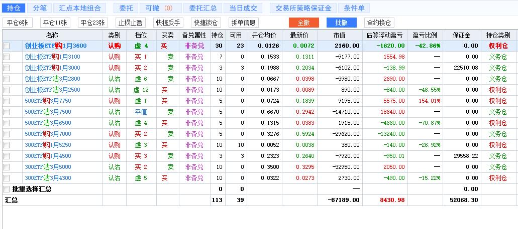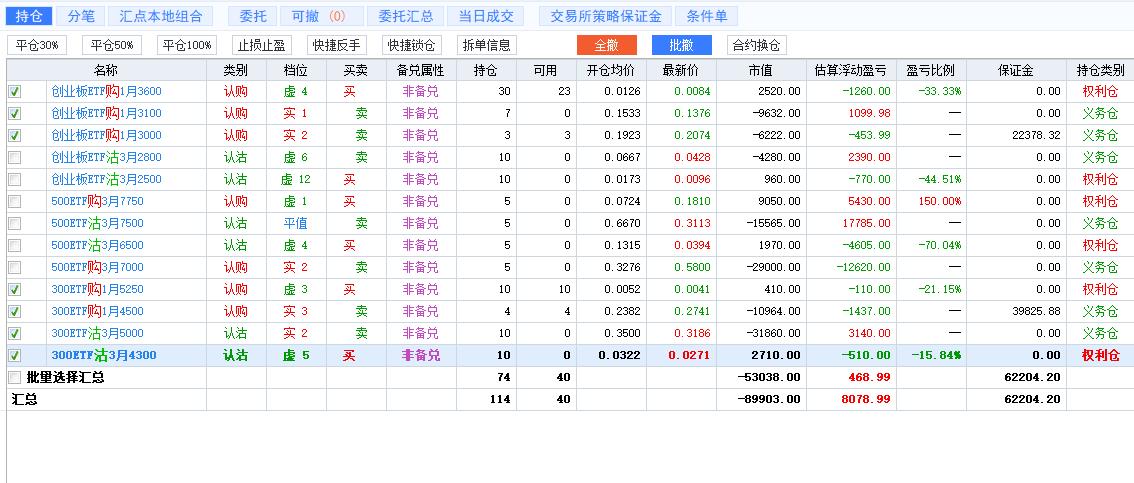 持仓里的几个策略组合相互打架,起因在于对行情的错误判断、以及后续应对的不当,都造成不小的损失。