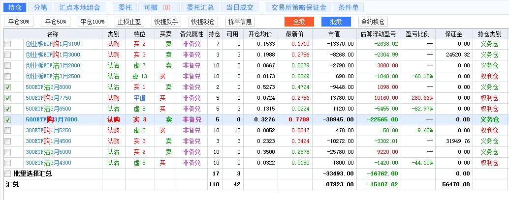 平掉了2张创业板卖购,平掉1张500卖购
