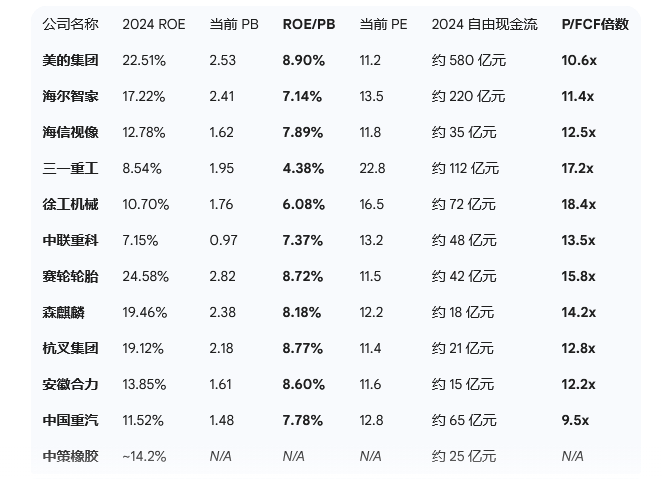 估值逻辑:市场不再把它们当作“成长股”,而是当作“现金流/红利股”。参考全球同类巨头,如惠而浦(Whirlpool)或米其林(Michelin),其估值常年也就在10倍左右。