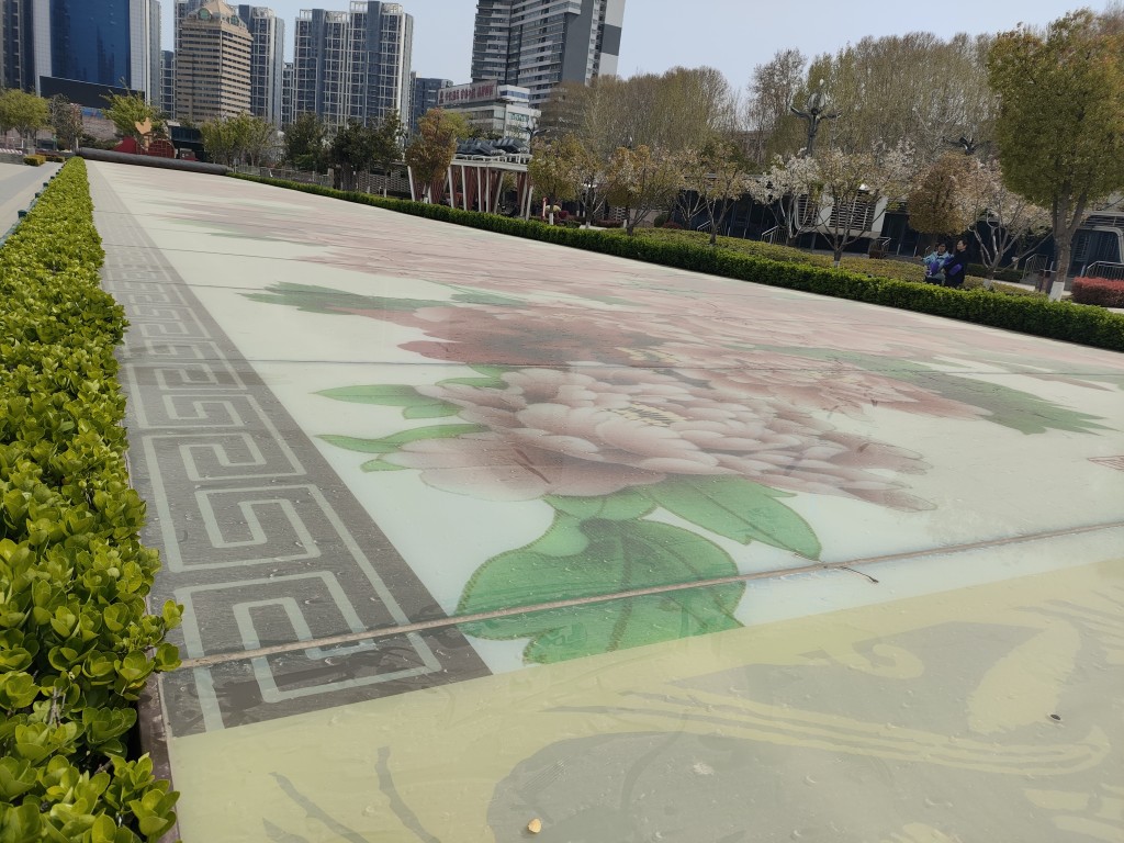 朋友得知我要离开了,特地过来送我,我就约在了牡丹广场见面,也算是逛的最后一个景点了。牡丹观赏区设在广场中部,中央有 18 米见方、1.5 米高的牡丹台,台面嵌有大型三维牡丹花饰,入口处镶嵌 “牡丹石”,东西两侧为半圆形牡丹坛。