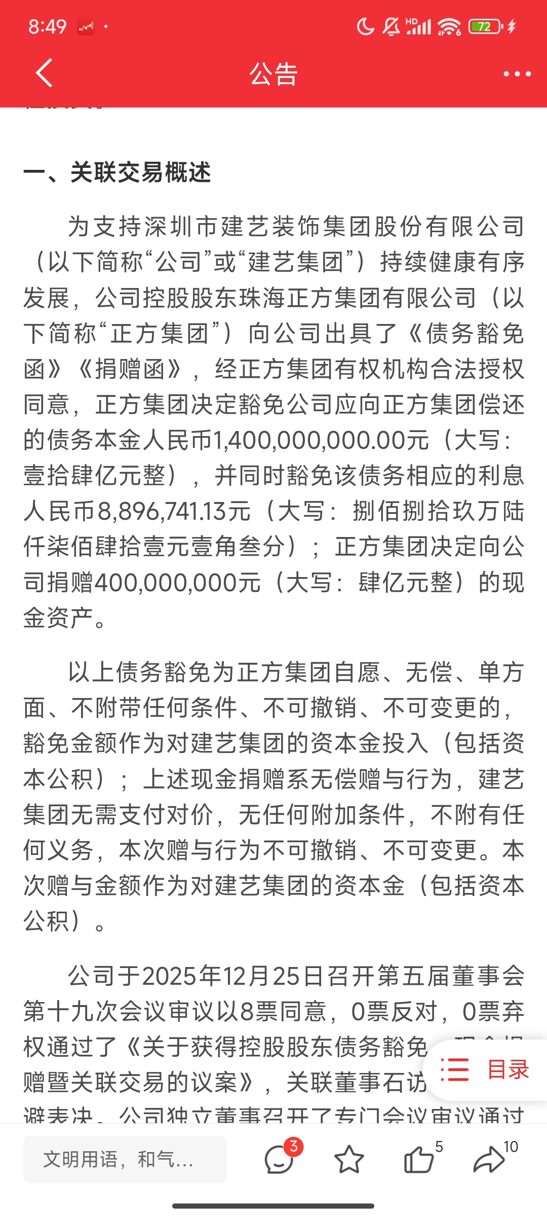 *st建艺获得大股东债务豁免和现金捐赠,净资产大概率能转正,保壳大概率是成功了