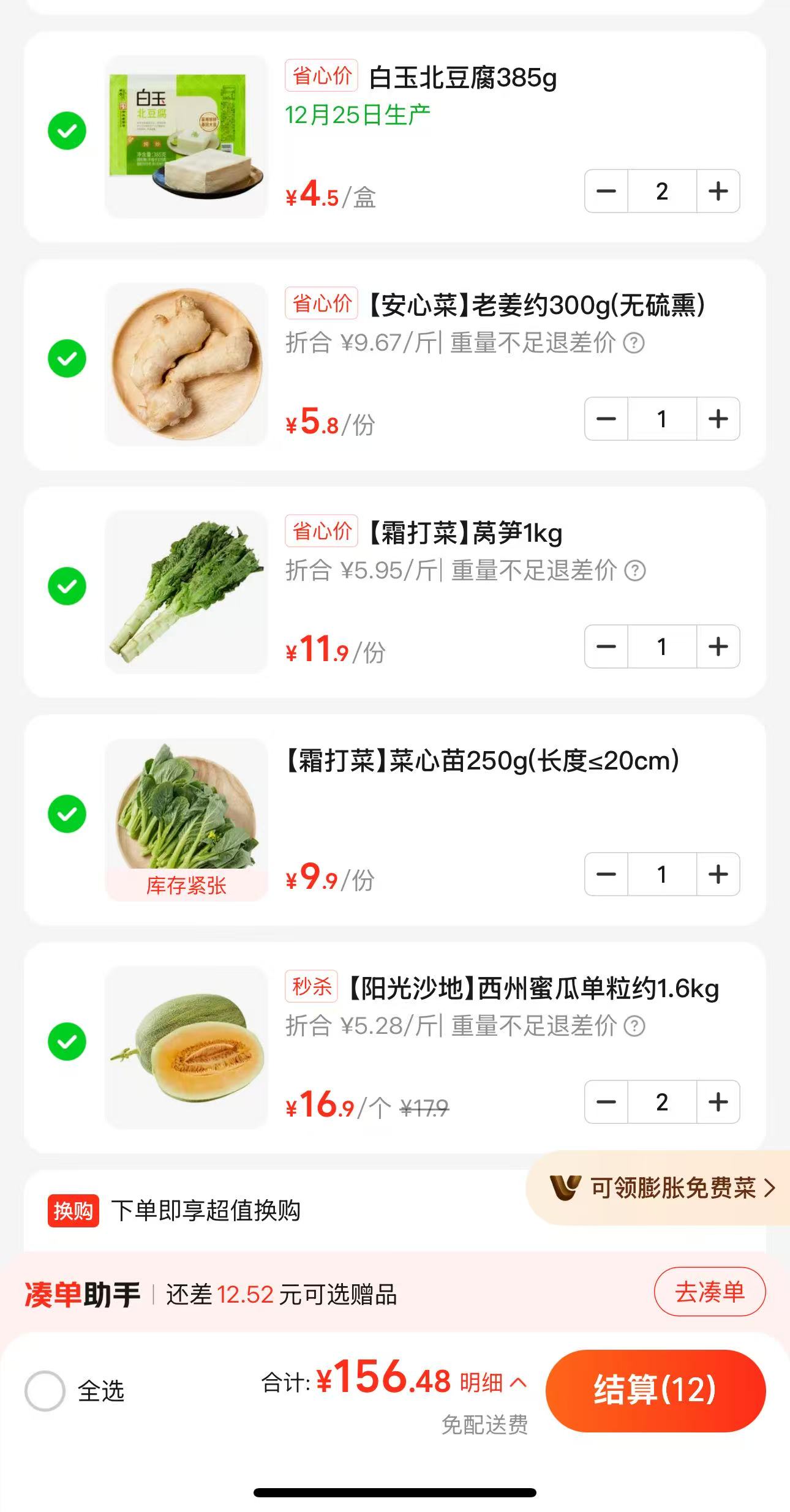 盒马NB除了本身定价便宜以外,每天晚上都会大打折6-8折,像我这个清单里的蔬菜其实都是前一天1月5日上架的,也就是打折的蔬菜也会很新鲜(对我这种穷屌来说)。肉要多一天1月4日的,夏天我不敢买,吃过药