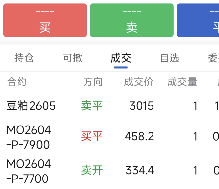 最近一些仓位变动商品 豆粕5 移豆粕9 小一半,差价在50-100铁矿5 移铁矿9 一半,差价在35左右卖了少量铁矿和豆粕(卖在低位,比此时的位置还低)股票本周先逐步减仓,然后到今天又加仓到 41%股指期货期权新开一手卖MO2604-P-7900,价格251,如果跌下去,就认账了,被动增加仓位。去年吃贴水备兑丢失的位置6400和7800,我要再接回来。当然接回来的后果,可能是没有享受股指上涨的愉...
