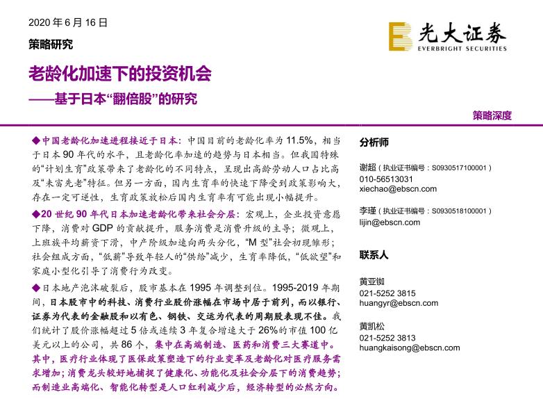 5、存在问题:随之而来的问题是随着中国人口老年化,消费会好吗?对照日本股市,老年化的日本股市里涨的好的就是三类指数:医疗、消费、科技。科技、医疗上面已排除,就剩下消费了。