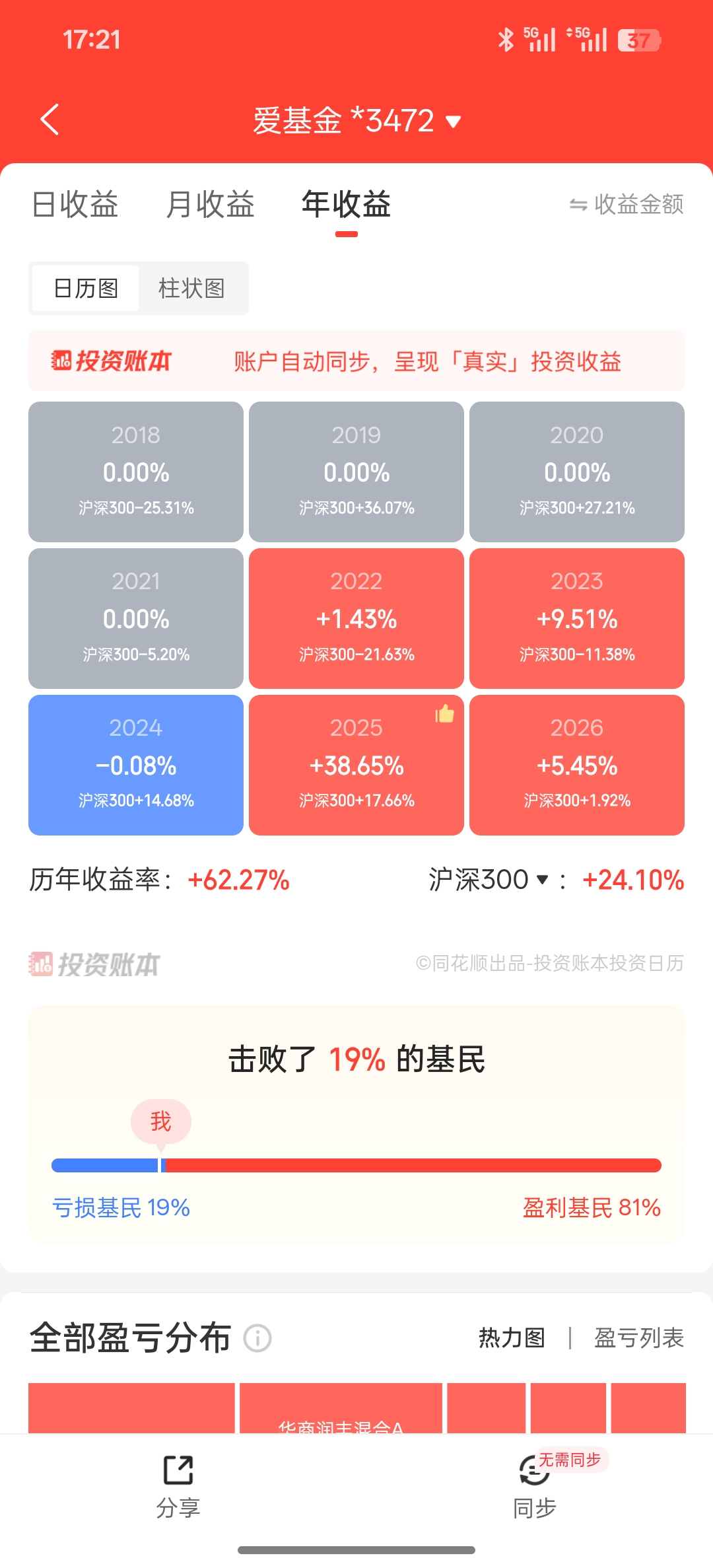 按照同花顺投资账本APP的统计收益率,不太准,但是基本够了,我不想手算了