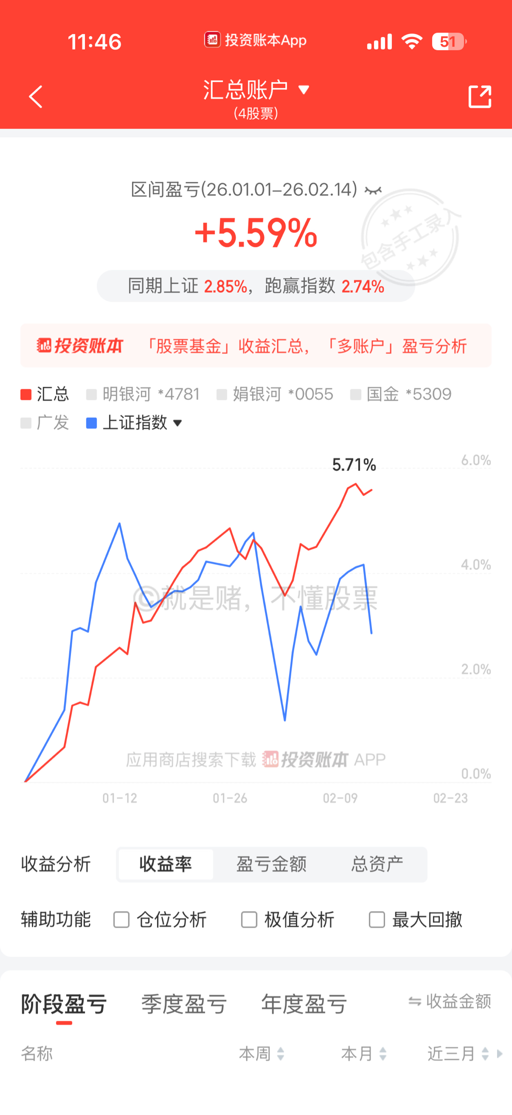 这一波踏空已经麻了,基本跑输所有指数。2.54%,收益垫底了,思路没跟上啊,熊市思维,算球了,就这样吧。