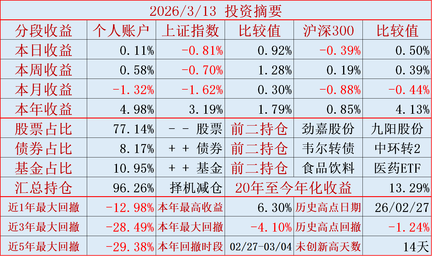 持仓的盘江股份涨停,超越指数部分收益。(前天,劲嘉股份跌停,滞后指数部分收益。)