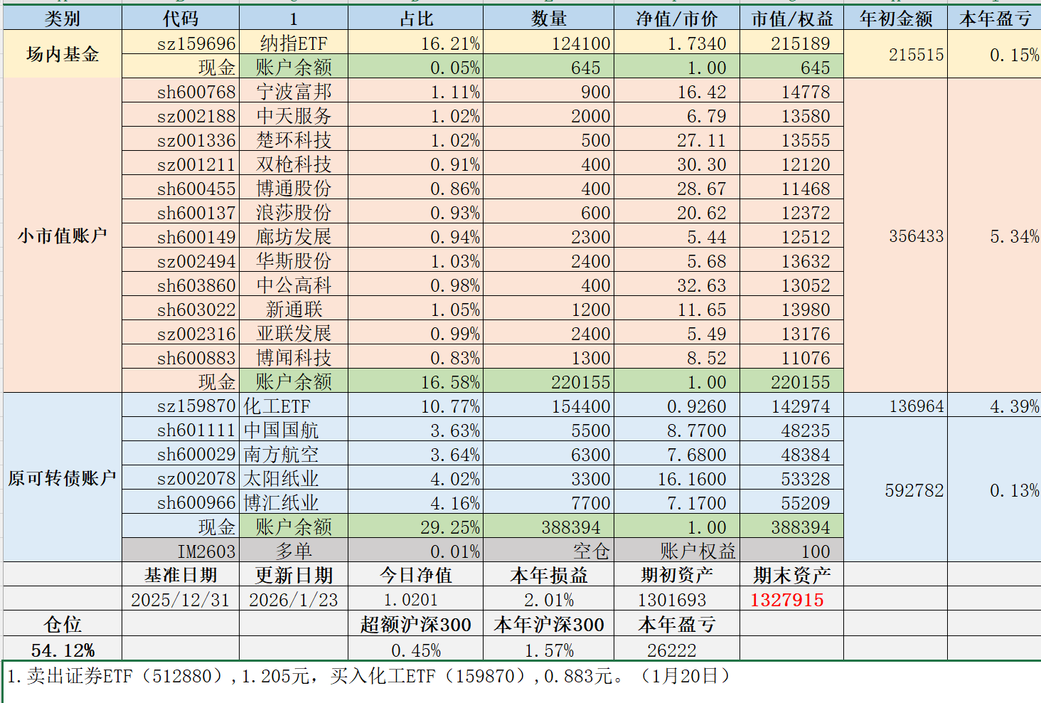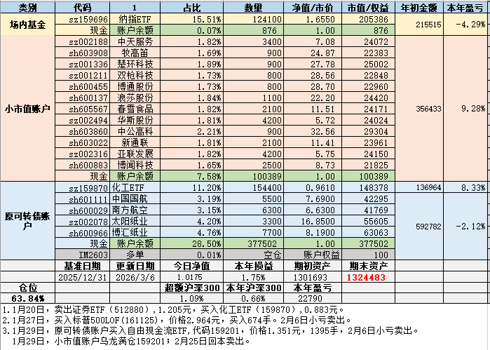 3. 乌龙操作,把小市值账户的剩余资金也都买了159201,这个明早竞价出掉。