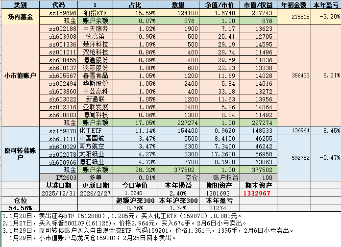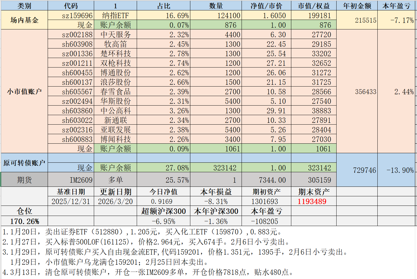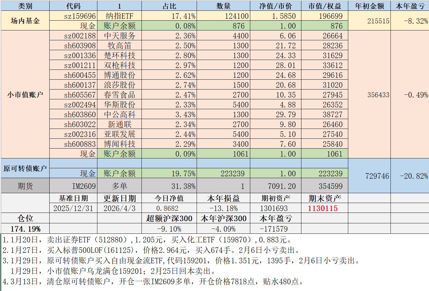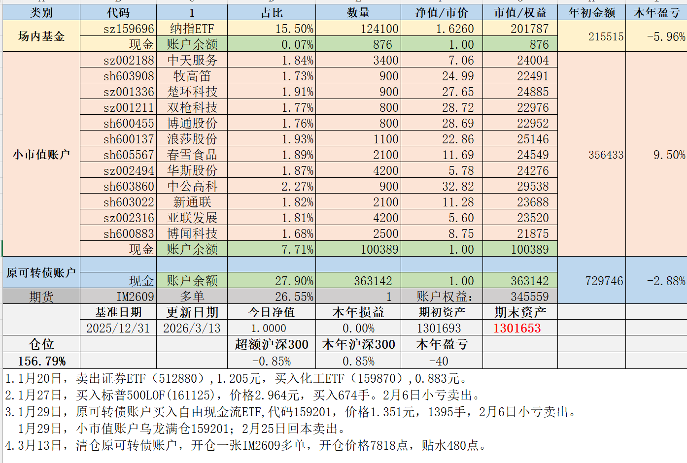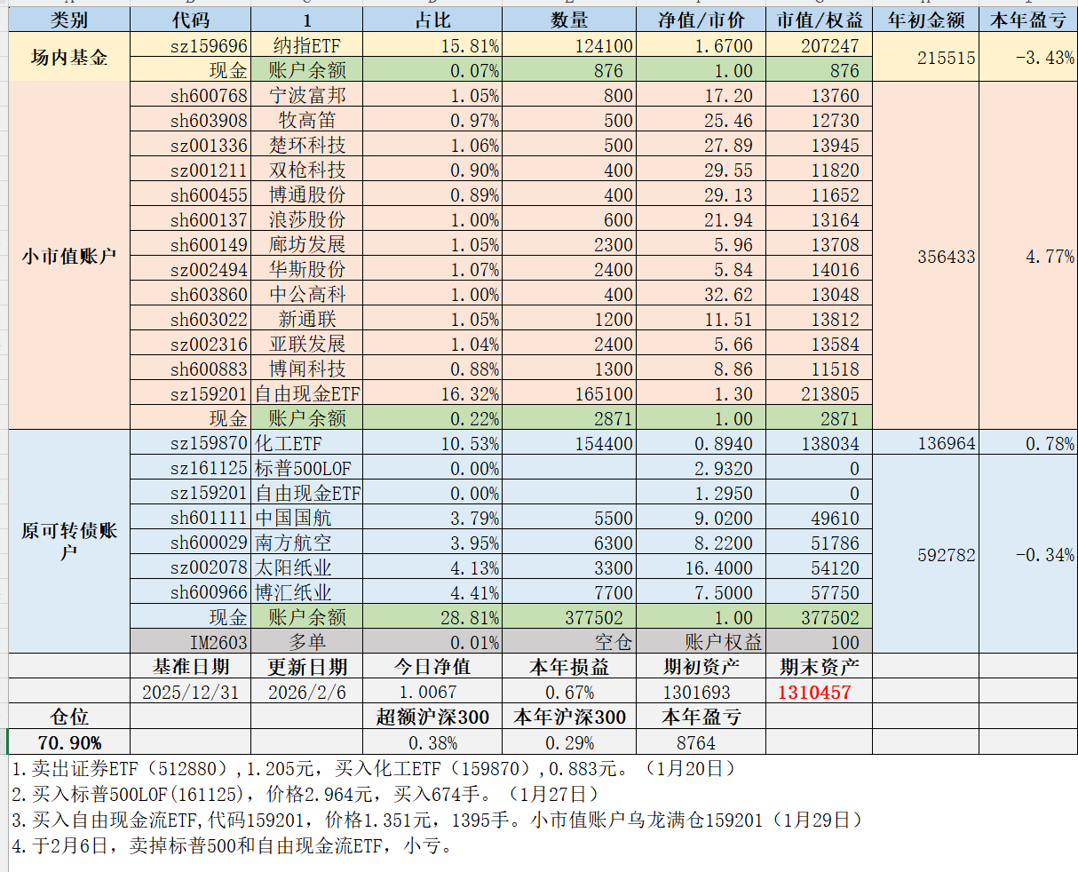 1.小市值账户继续独立封闭运行,择机加仓不再减仓。