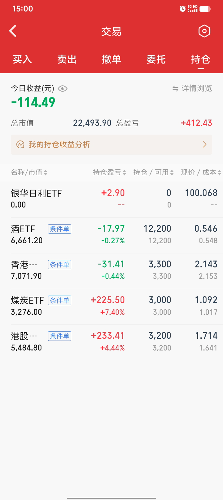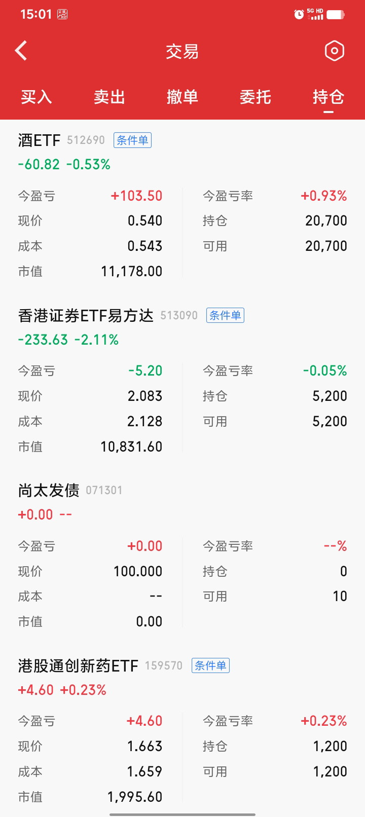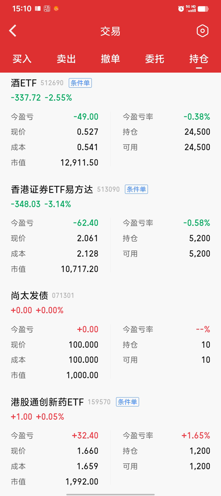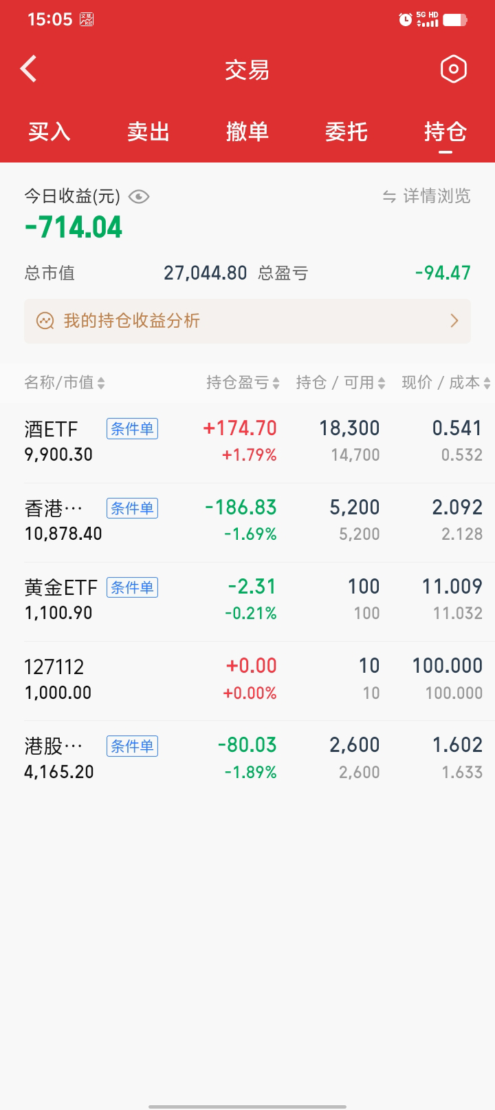继续网格,酒真就一日游啊,呵呵。买了一小份金etf,4%进1000块左右。白银基还没就位,要下周一,应该是T+4了,不知道到时能不能交易,后面不搞这些了,麻烦,还有0.05份还要赎回。期末正3300块。一月份结束,今年的目标已完成一半,后面慢慢折腾,570和090出局的网格间距要调小一点,最近有点弱。