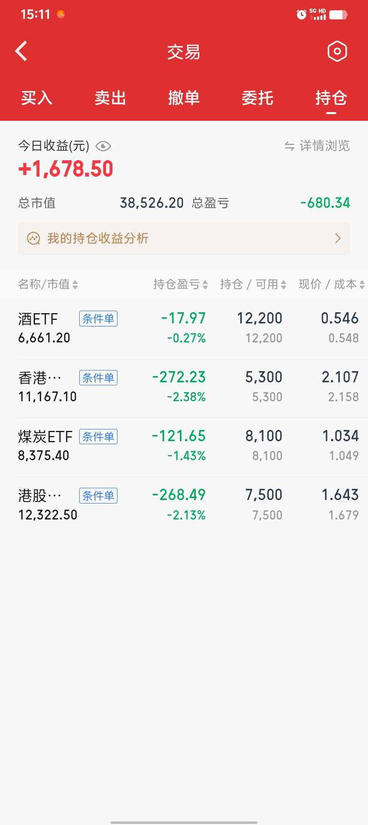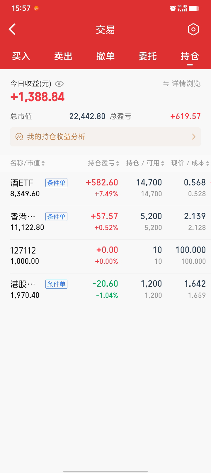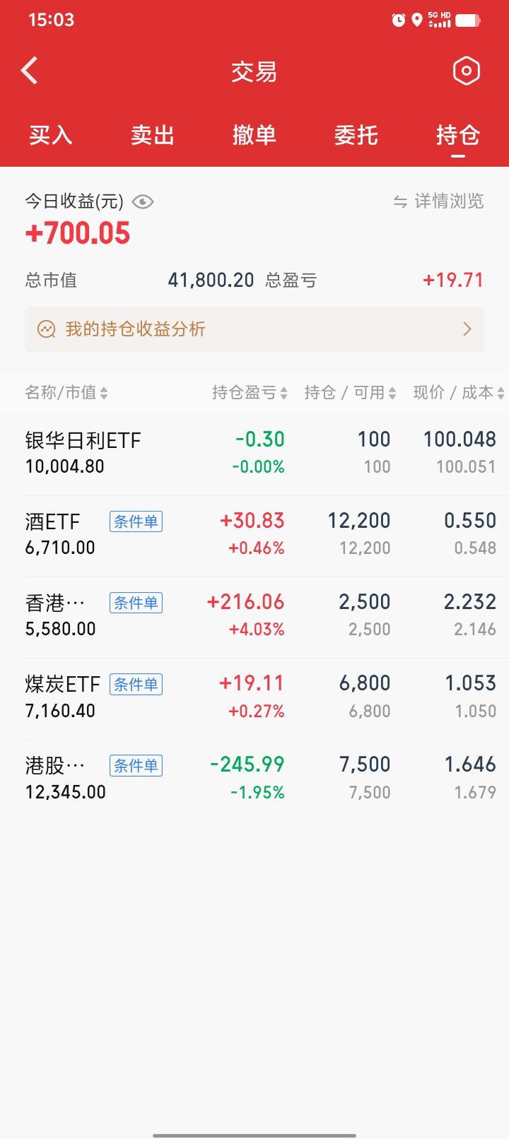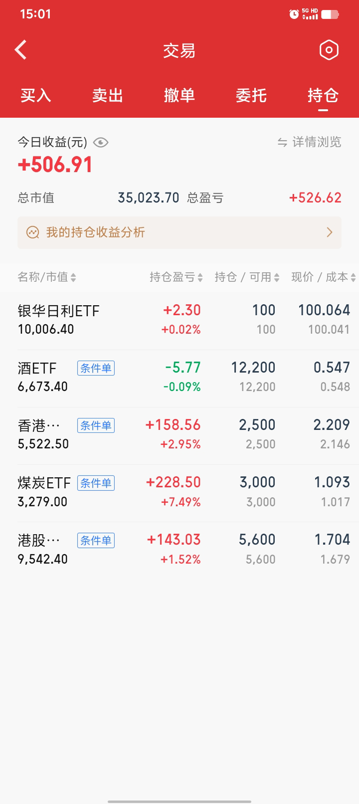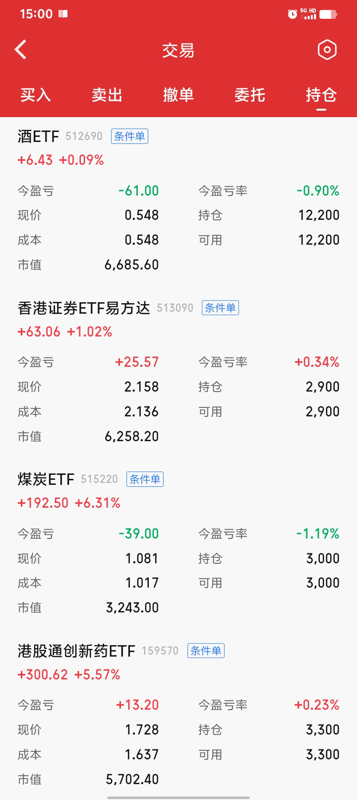 继续网格,酒真就一日游啊,呵呵。买了一小份金etf,4%进1000块左右。白银基还没就位,要下周一,应该是T+4了,不知道到时能不能交易,后面不搞这些了,麻烦,还有0.05份还要赎回。期末正3300块。一月份结束,今年的目标已完成一半,后面慢慢折腾,570和090出局的网格间距要调小一点,最近有点弱。