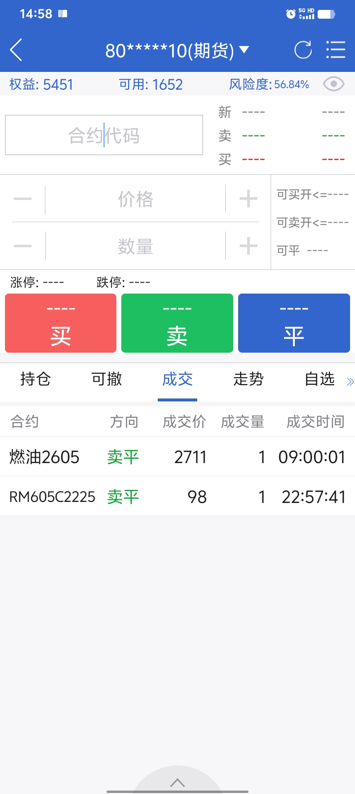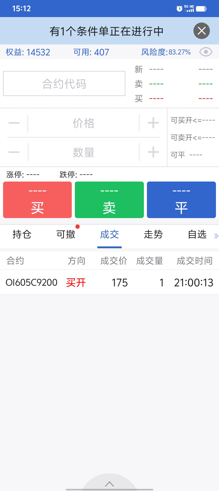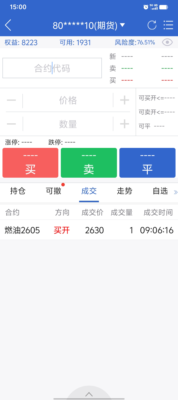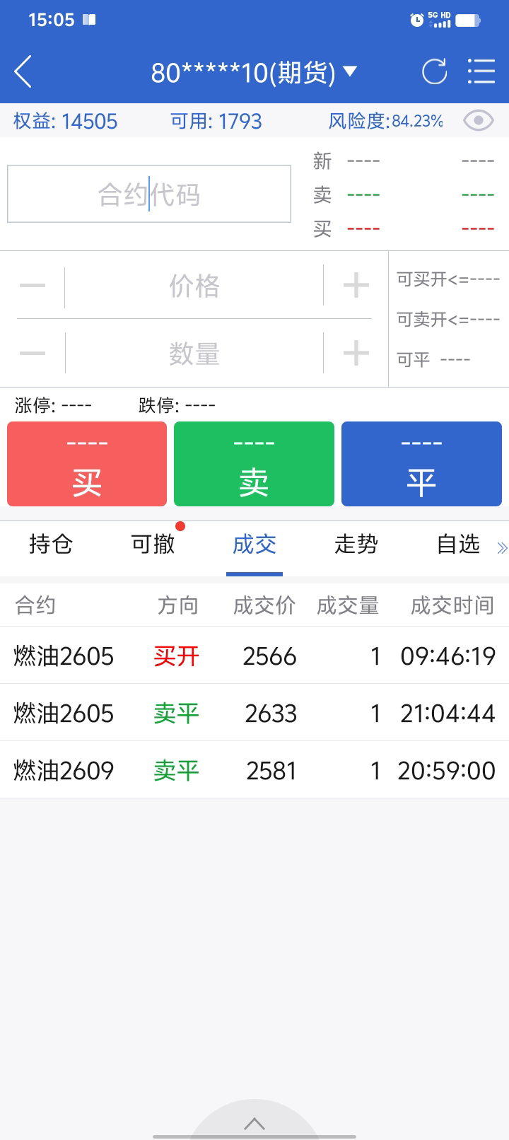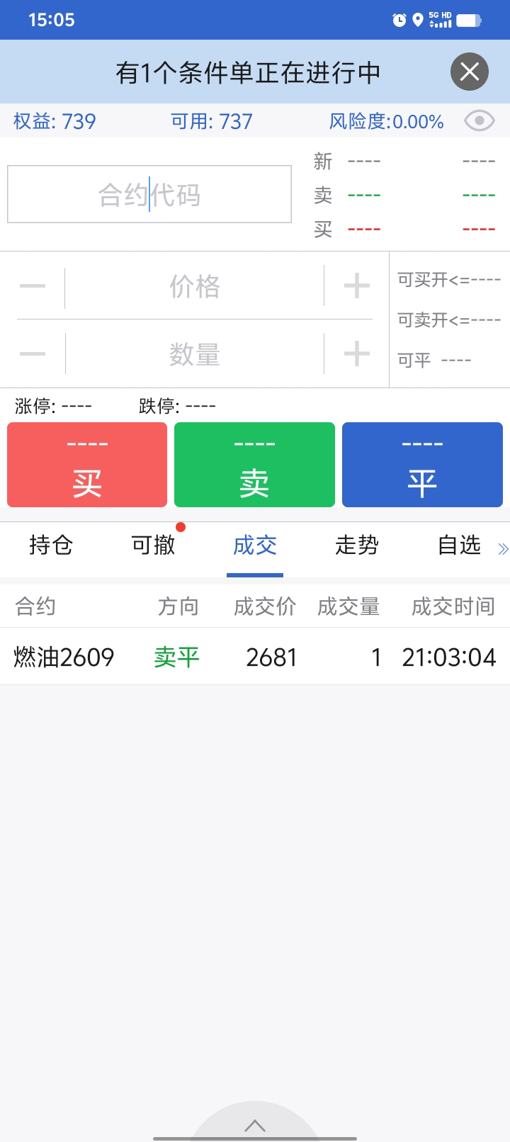 按计划,2695出fu05,2566进,正1280。196出油权,正200块。收盘到了357,真牛。82.5进粕权,22.5进铁权。Fu还剩一手05,和新进的2权,算是重新开始吧。燃油不错,05也涨了300多点,03有400多点吧。尽量不加码亏损部位。基金无交易,把网格间距调大了,交易会少。