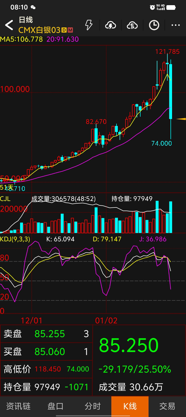 期货无交易,白银真疯狂啊,有色也不错。fu站上2500再说,反正只出不进了。