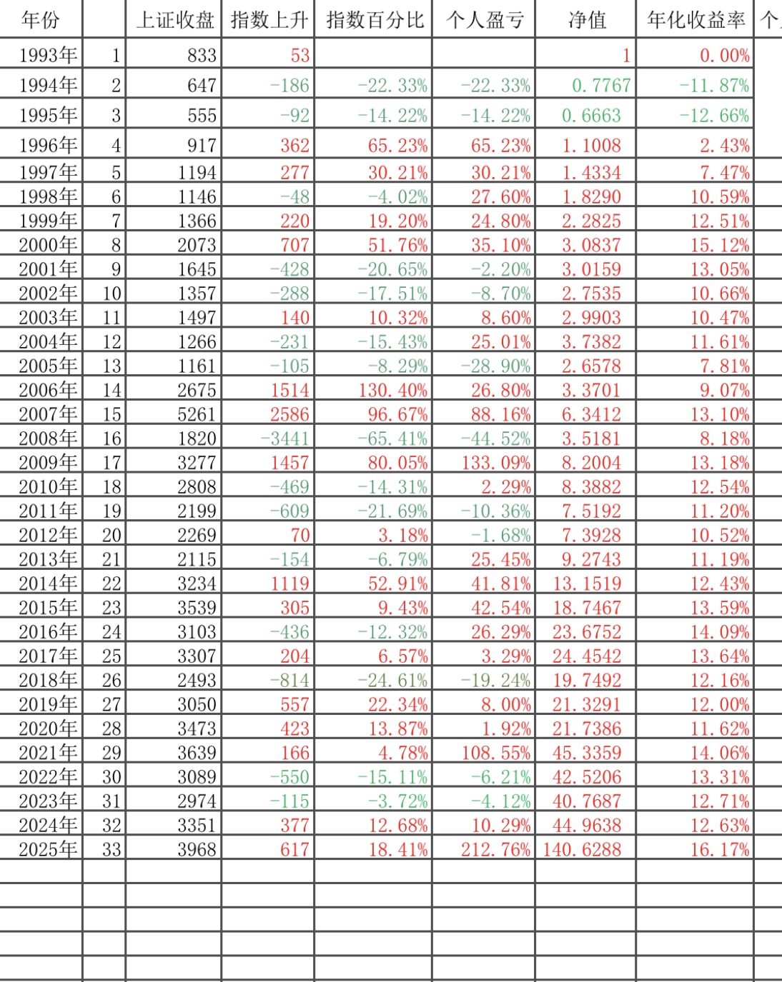 然后到了2025年,照例先报全年收益:212.76%,上证指数上涨18.41%,领先194.35%。不管是收益率还是收益金额,都是炒股33年来最高的一年,既然赚钱了,高兴了,就写个总结吧。