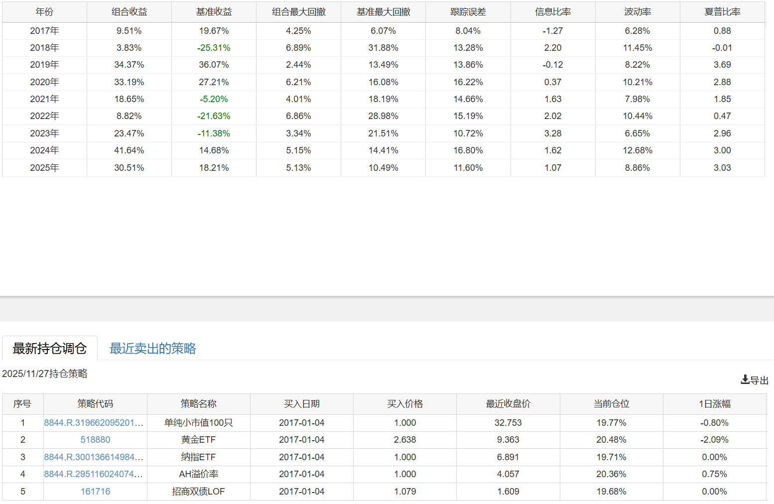 主观账户收益差只能找到一个借口,那就是精力几乎都在自动交易上面,没花什么精力研究股票,买卖比较随意,结果重仓的消费和医药萎靡一整年,徒呼奈何。自动交易账户常年持仓200只以上,分投在40多个风投项目上(策略或抄作业跟单),一年来踩了很多坑,最惨的两个项目已经亏了40%现在还没有割掉。。。ETF策略几乎全军覆没也还在苦熬。不过今年沉淀下来的可靠项目越来越多,项目选择的眼光自我感觉也越来越好,后备项目还有很多,相信明年会好过一些。不过在现有的框架内暂时不会再挖掘新武器了,更多地还是要想法去新的武器库里找武器,也许是期权,也许是投顾,也许是从抄作业中领悟出投资策略。能不能找到新的武器库,现在还不知道,总之是大胆试错,小额下注。