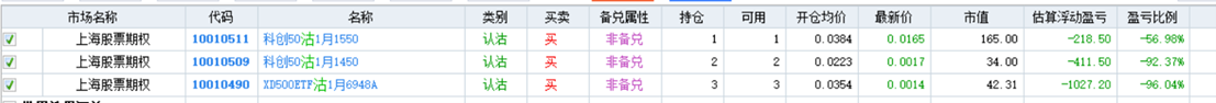 组合亏损,科创50ETF走势太强劲,目前所有期权账户均空仓,看不明白市场和政策,觉得科创50会率先调整,看到确切信号再行动